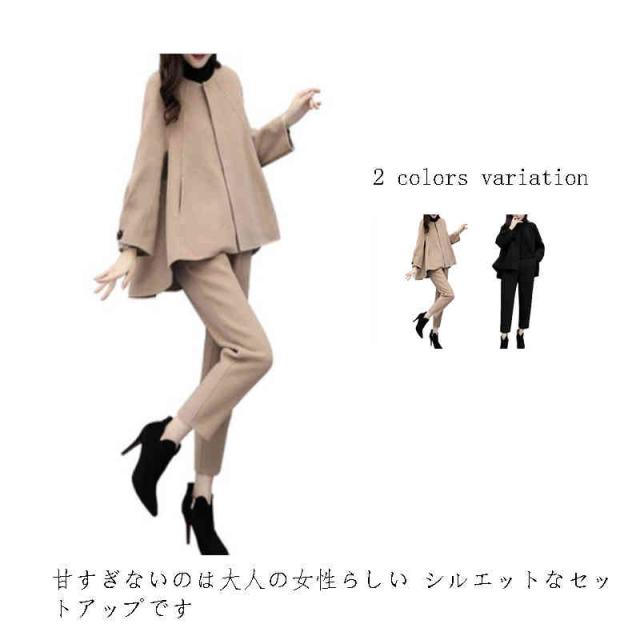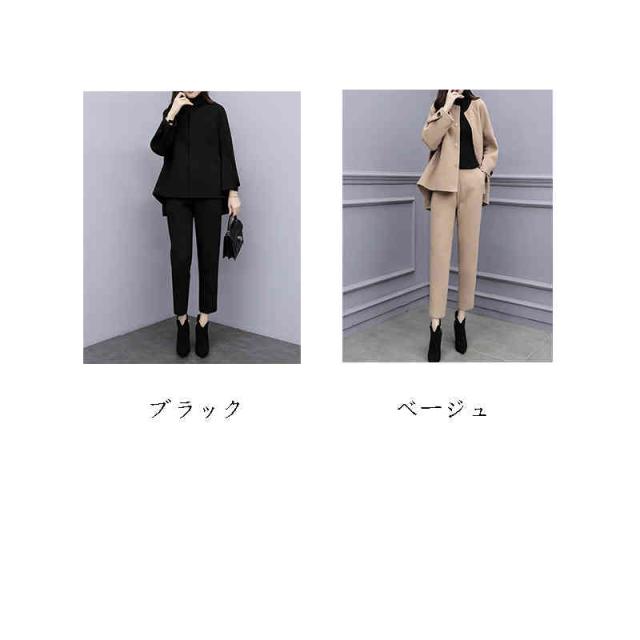 セットアップ レディース 秋冬 2点セット 秋コーデ パンツスーツ レディース 長袖 無地 ゆったり 体型カバー フォーマル ジャケット卒業式 入学式 セレモニー 秋服 30代 40代 50代 母親 OL女性 オフィス ビジネス 通勤 着痩せ 上下セット ガウチョパンツ