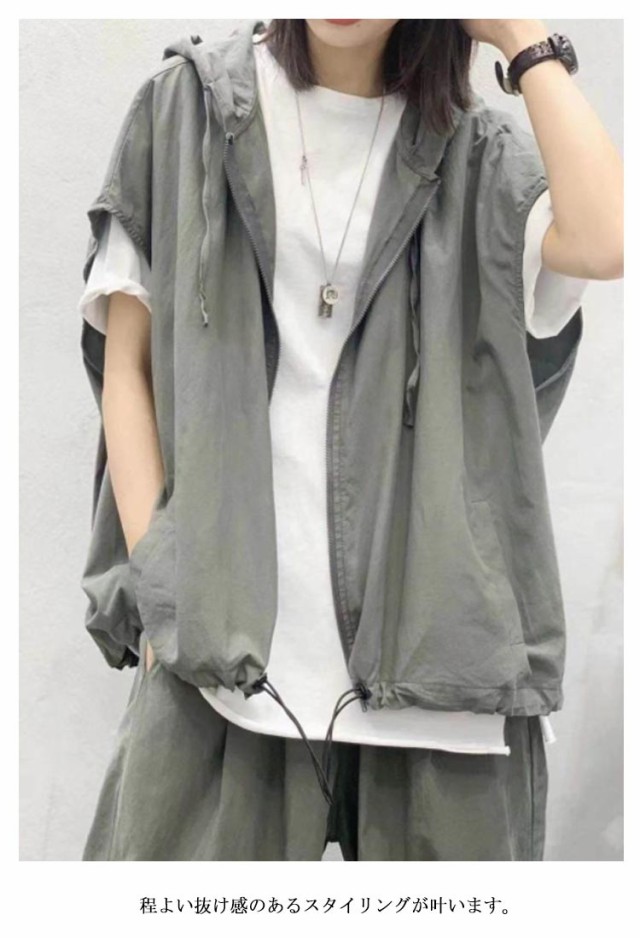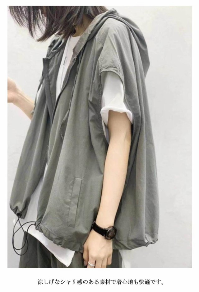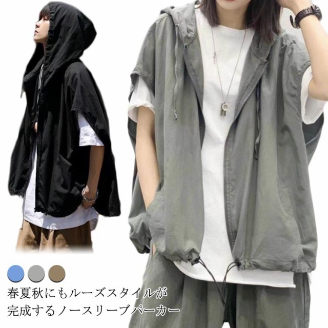 | 春夏秋にもルーズスタイルが完成するノースリーブパーカー 程よい抜け感のあるスタイリングが叶います。 涼しげなシャリ感のある素材で着心地も快適です。 ジップアップ仕様なので軽い羽織としてもお使いいただけます。 春・秋はシャツやカットソーの上から、冬はジャケットのインナーとしても◎ 男女問わず着用できるユニセックスアイテムで、ペアコーデや友達とのリンクコーデにもおすすめです。 | |