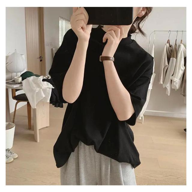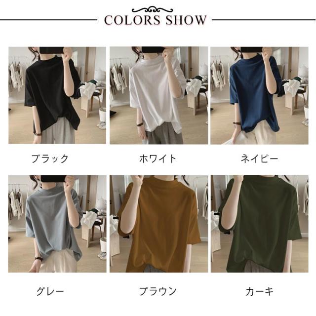 タートルネック レディース 半袖 ハイネック tシャツ ゴルフ 薄手 事務服 春 半袖シャツ カットソー 秋 トップス 夏 無地 大きいサイズ カジュアル タートルネック おしゃれ シンプル 体型カバー オフィス 20代 ハイネック 春夏 m l 白 黒 韓国 半袖tシャツ 30代 40代