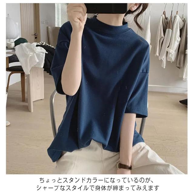 | プチハイネックの半袖カットソー 柔らかくて通気性の優れた素材で着心地快適 ちょっとスタンドカラーになっているのが、シャープなスタイルで身体が締まってみえます | |