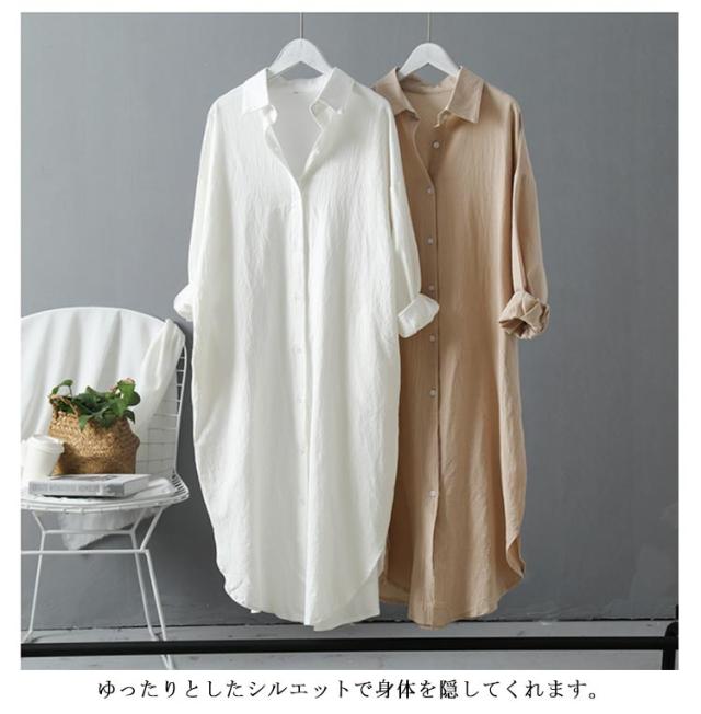 ワンピース 夏 送料無料 ワンピース 白シャツ 大きいサイズ 長袖 レディース 白シャツ 着痩せ カーディガン 春 サマー ゆるシャツ 体型カバー ロング スリット 秋 ゆったり 無地 白 春 ロングシャツ 夏 ゆったり S M L シャツワンピース