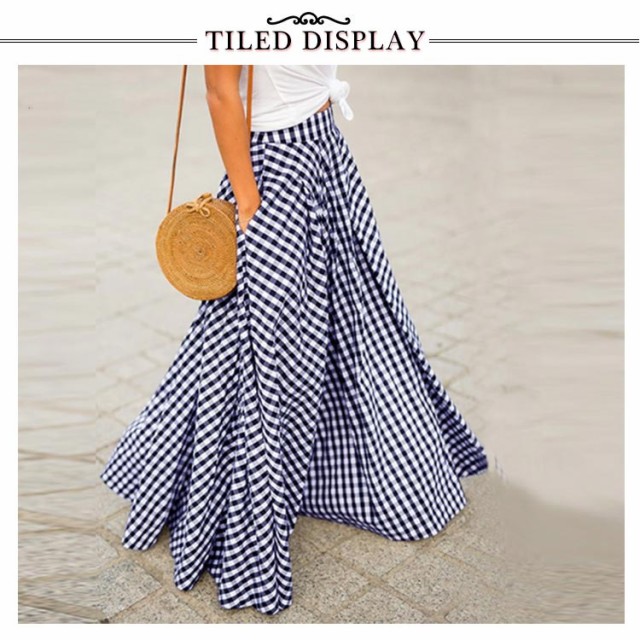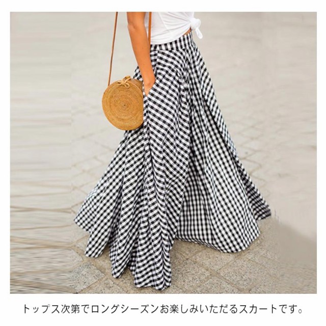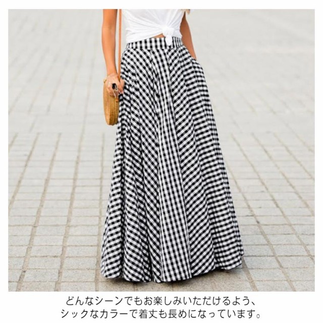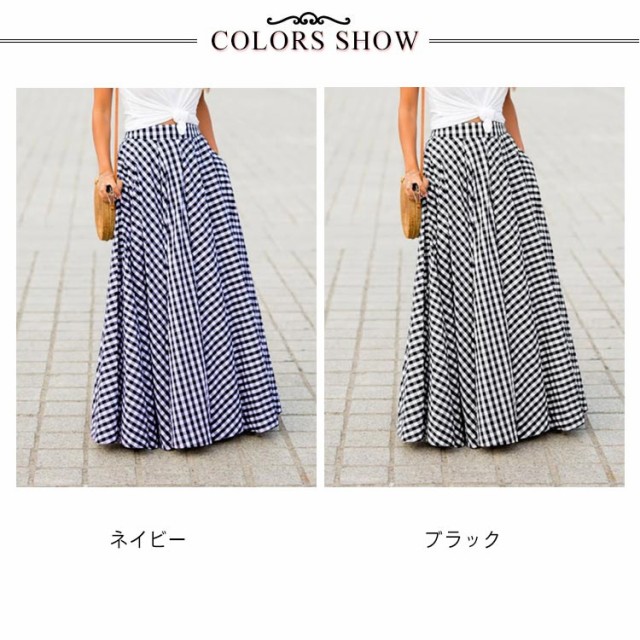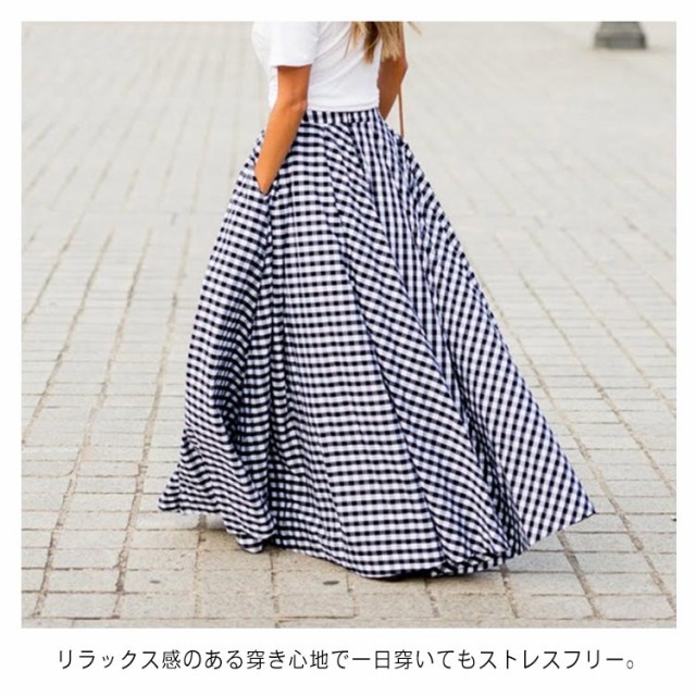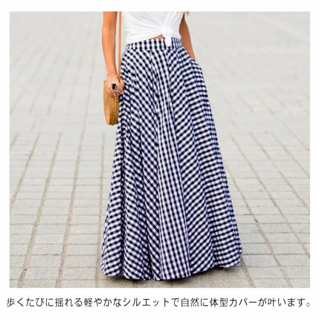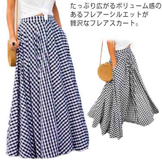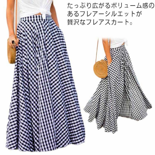 マキシ丈 フレアスカート 秋 ロング丈スカート ロングスカート レディース 春 ブラック ボトムス チェック柄 夏 ロング ギンガムチェック 大きいサイズ スカート ハイウエスト ふんわり aライン プリーツスカート 体型カバー ネイビー スカート