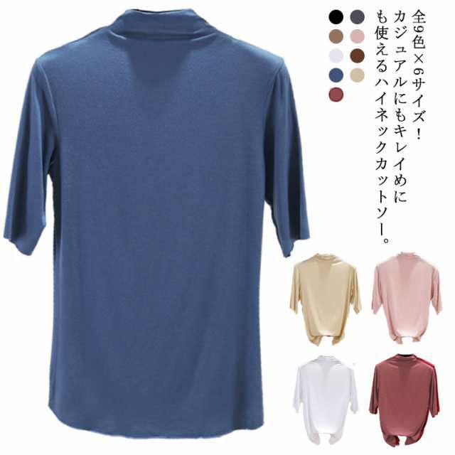 全9色×6サイズ!ハイネック tシャツ カットソー レディース 5分袖カットソー トップス ハイネックカットソー 五分袖 無地カットソー ボトルネック シンプル カジュアル キレイめ インナー 春 夏 秋 送料無料