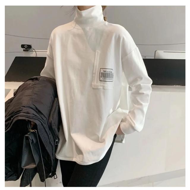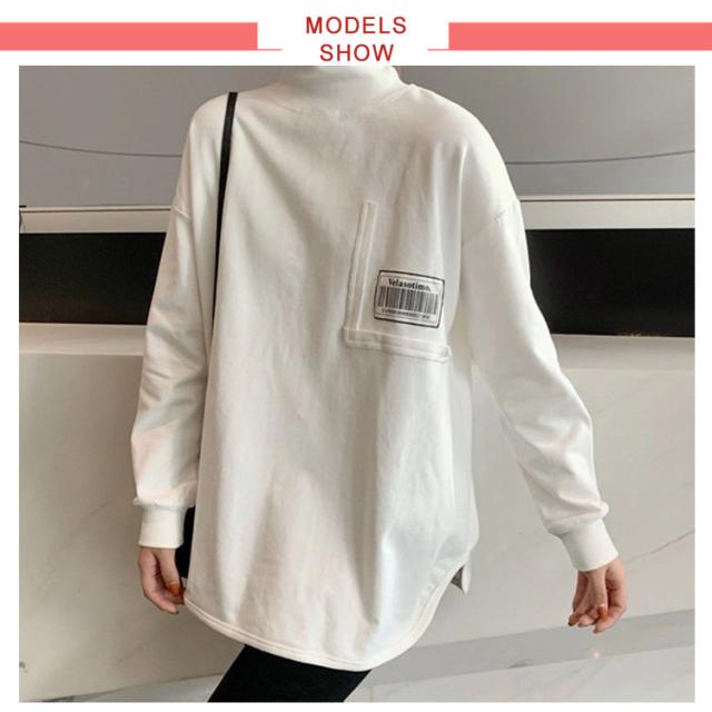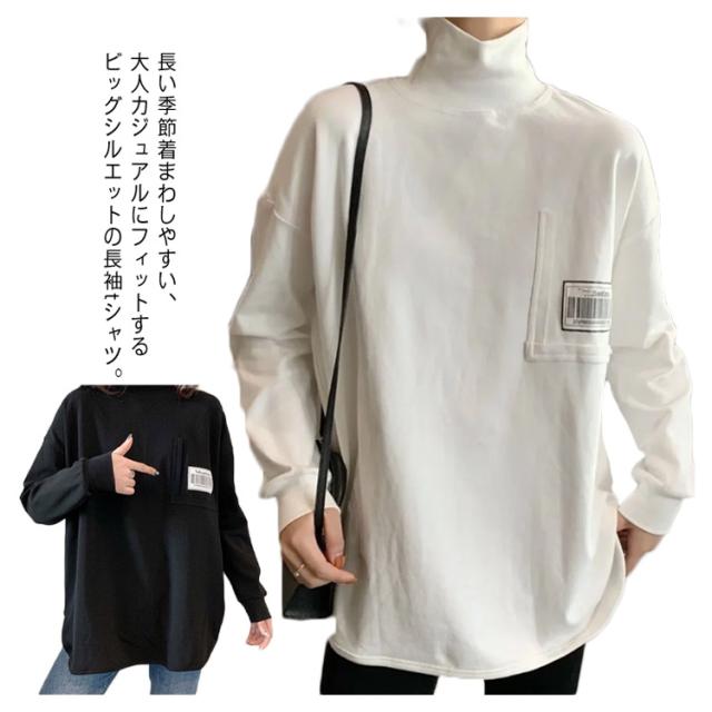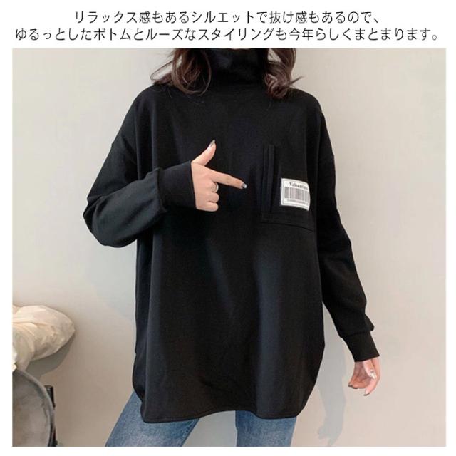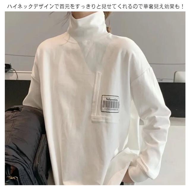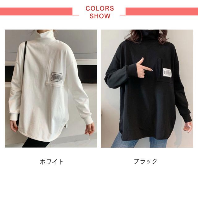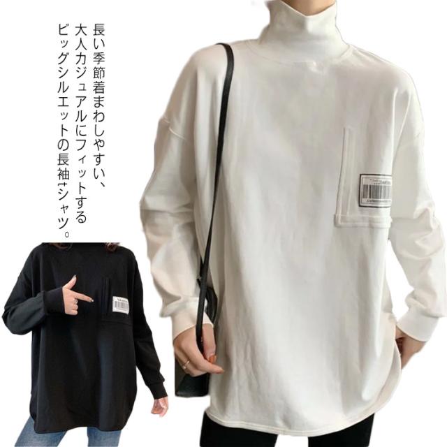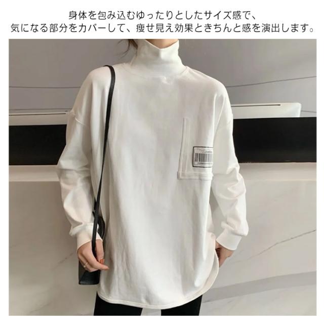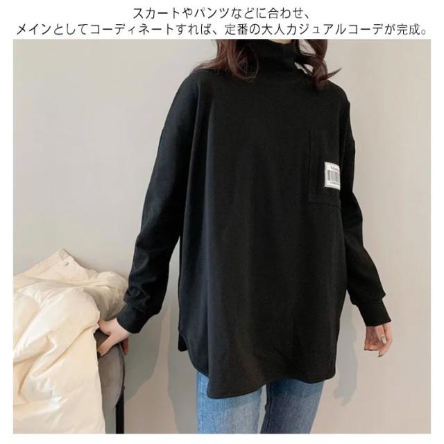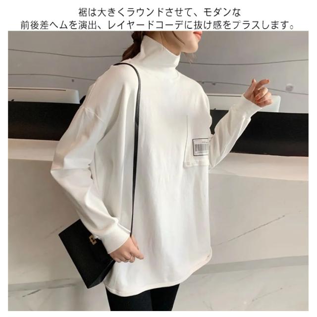 Tシャツ ロンt カットソー レディース トップス 長袖 タートルネック ハイネック 重ね着 ラウンドカット チュニック レイヤード 秋 冬 厚手 小顔 無地 定番 着回し ストレッチ シンプル おしゃれ 黒 カジュアル シンプル tシャツ ロング 送料無料