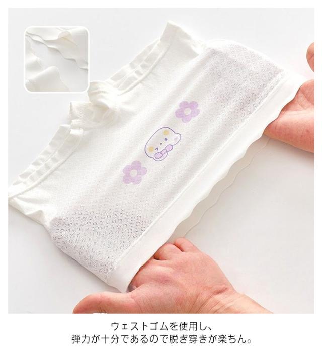 | 高品質な生地で作られ、ふわふわと柔らかな女の子ショーツです。 かわいい絵柄のデザインで、女の子の可愛さをアピールしています。 柔らかくてなめらかな材質で作られ、肌に優しく、蒸れにくく通気性がいいです。 ウェストゴムを使用し、弾力が十分であるので脱ぎ穿きが楽ちん。 | |
