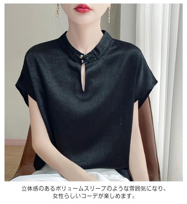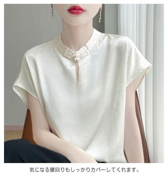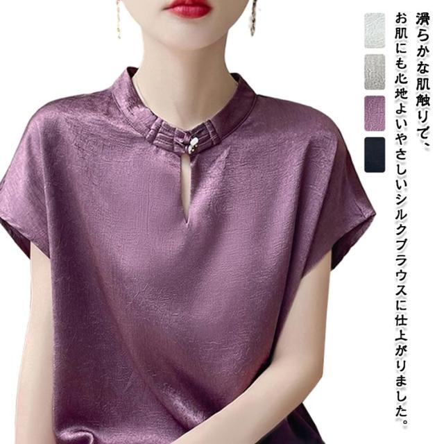 tシャツ サテン シルク シャツ ブラウス 半袖 吸湿 プルオーバー シャツブラウス トップス 体型カバー インナー 大きいサイズ 滑らか レディース ひんやり 薄手 高品質 敏感肌 光沢感 透けない 清楚感 重ね着 大人 きれいめ