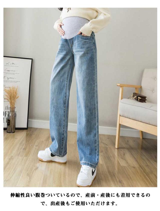 ストレッチ マタニティ かわいい デニムパンツ パンツ 美脚 ロング丈 ワイド マタニティ 大きいサイズ マタニティズボン おしゃれ ストレート マタニティパンツ ジーンズ 9分丈 ストレートデニム マタニティウェア 妊娠初期 妊娠後期 臨月 産後 妊婦服 春夏