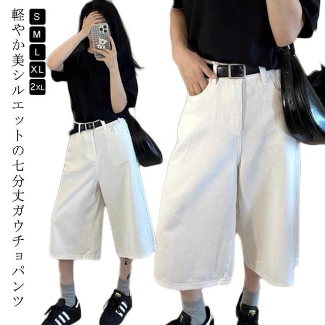 ガウチョパンツ ワイドパンツ 涼しい ボトムス ナチュラル ズボン ウエストゴム キュロット ワイドパンツ 7分丈 膝丈 スカーチョ レディース シェフパンツ スカーチョ スカンツ フレアパンツ 無地 涼しい 30代 40代 春夏 夏