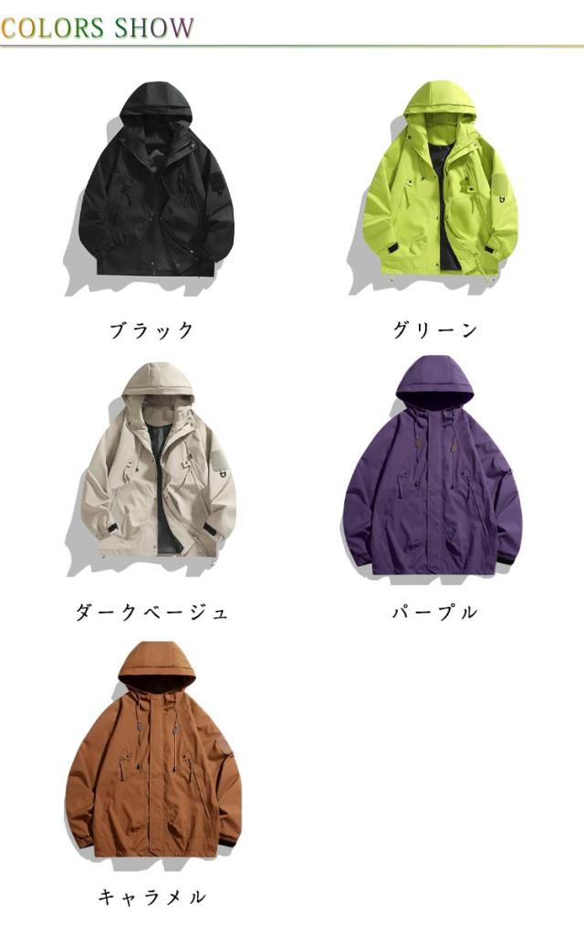 | 男性にも女性にも着用できるこのマウンテンパーカー。 柔らかくゆったりとした素材を使用し、細やかで肌触りの良い裏地を備え、優れた通気性を提供します。 防風や防水加工されているため、大切なものを濡らしにくい。 普段のお洒落だけでなく通勤や通学にも使える優れものです。 | |