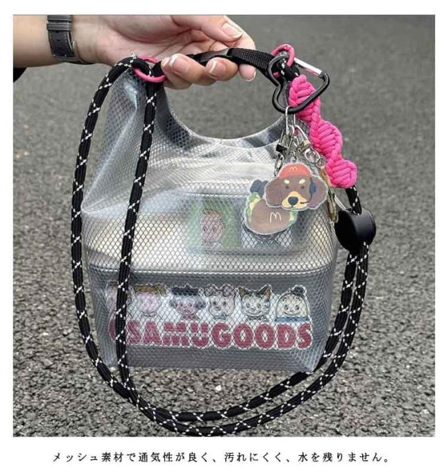 | お洒落なデザインで、男女問わず使えるプールバッグです。 大きく開くデザインで物品の入れと取り出しに便利です。 メッシュ素材で通気性が良く、汚れにくく、水を残りません。 肩紐は調節でき、ハンドバッグ、ショルダーバッグ、斜め掛けバッグとして便利です。 サイドにストライプが付き、縦に持ち運ぶることがとても便利です。 水泳バッグだけでなく、旅行時の洗顔道具、化粧品などの小物の収納バッグとしても使えます。 | |