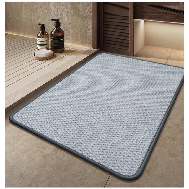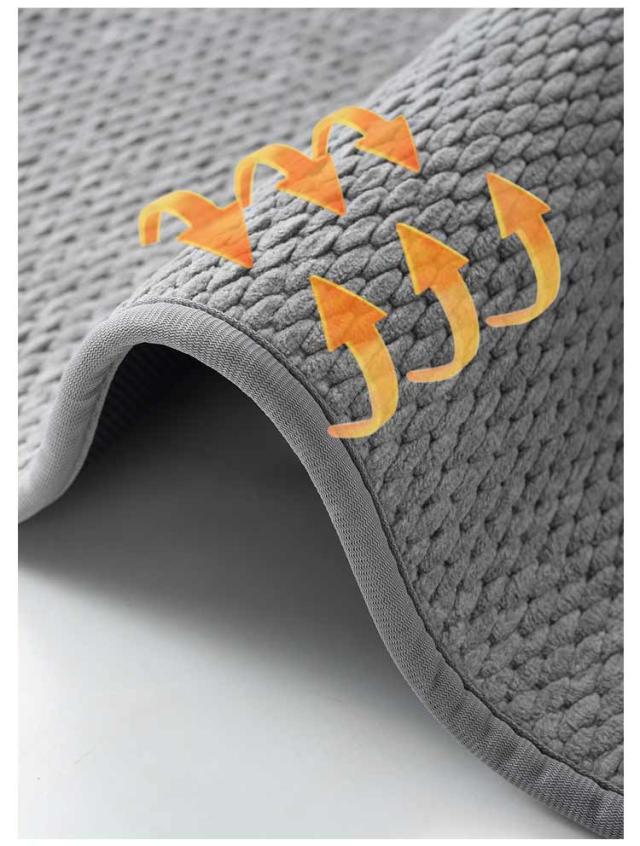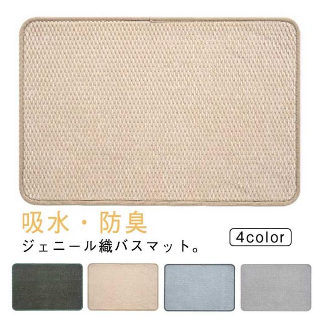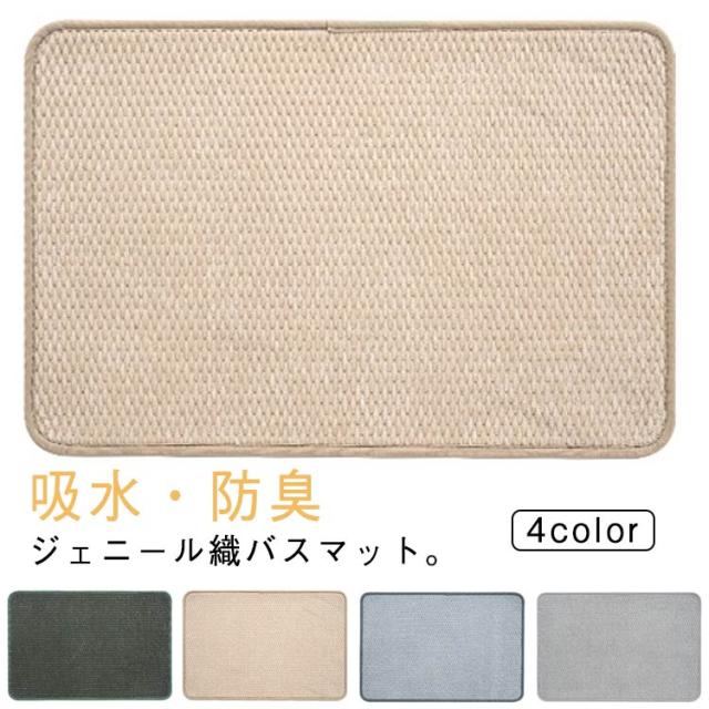 | 吸水・防臭 ジェニール織バスマット。 ふわふわジェニール織仕様、踏み心地よく、足裏の水もさっと吸い取ることができるバスマット。 裏面はゴム素材で、滑り止め、転倒しにくい。 | |
