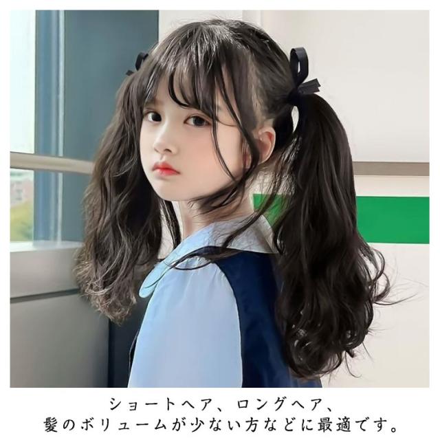 ポイントウィッグ 子供ウィッグ ゴムポニーテール キッズ エクステンション 子供ウィッグ リボン付き ポニーテール つけ毛 髪飾り 女の子 ボリューム エクステ 演出会 発表会 仮装 かつら