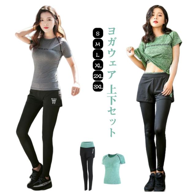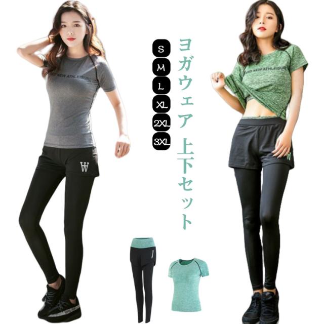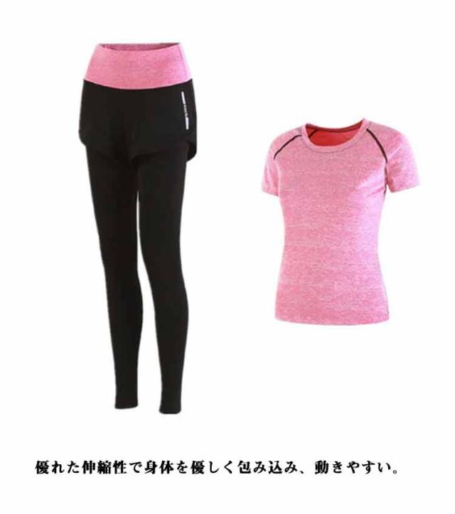 ヨガ レギンス ヨガパンツ ヨガウェア スポーツTシャツ レディース レディース セットアップ ドライ Tシャツ ヨガウェア スポーツウェア 可愛い 体型カバー トレーニングウェア ヨガウェア上下セット