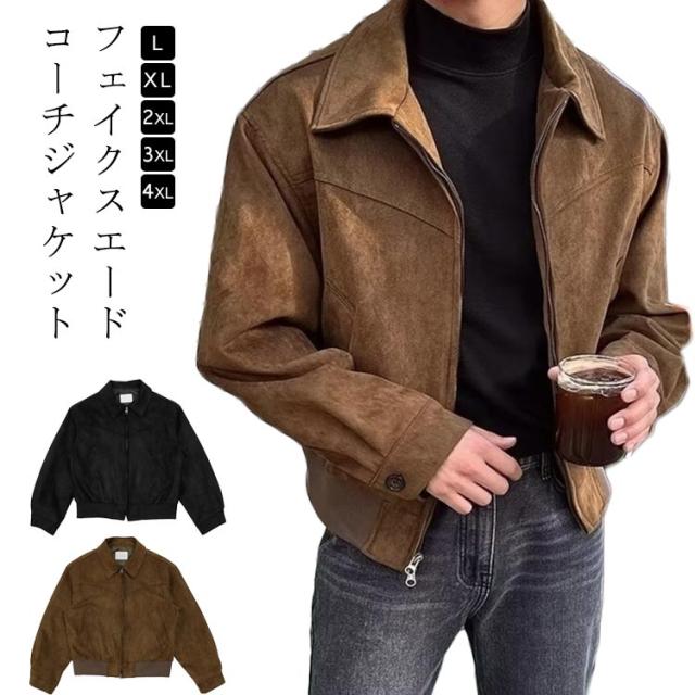 コーチジャケット ショートブルゾン ジップアップ スエード調 ジャケット ジャケット レザー レザーブルゾン ショートジャケット コーチジャケット スウェード調 春 秋 アウター