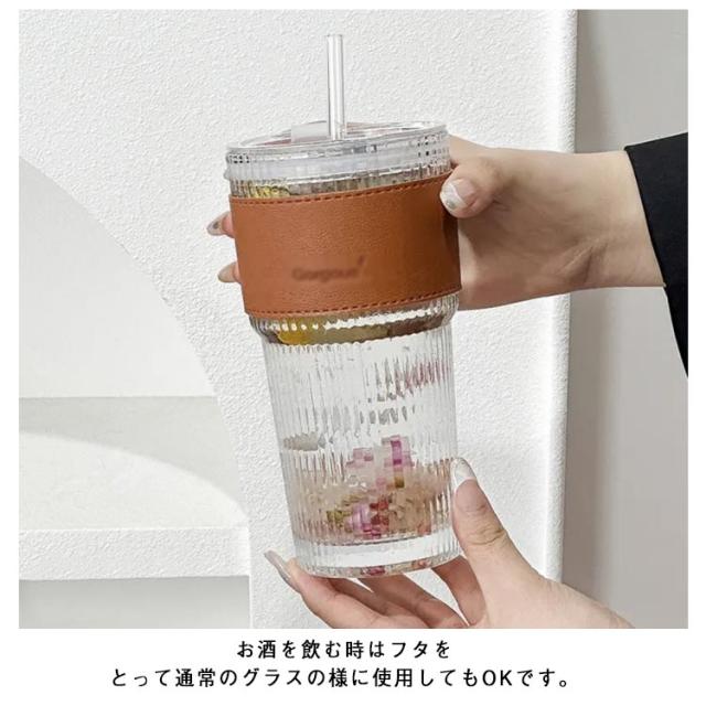 | お酒やジュース、ミルク、麦茶など美味しく映えるガラスコップ。 直飲みはもちろん、ストローも付きで、シーンや気分に合わせて2通りでご利用可能。 シンプルでおしゃれ! どんな飲みものでも好きに入れちゃおう! 耐熱カバー付きで、お湯を入れた場合も使いやすい。 お酒を飲む時はフタをとって通常のグラスの様に使用してもOKです。 コーヒー等の飲食店さんにも是非オススメです♪ | |