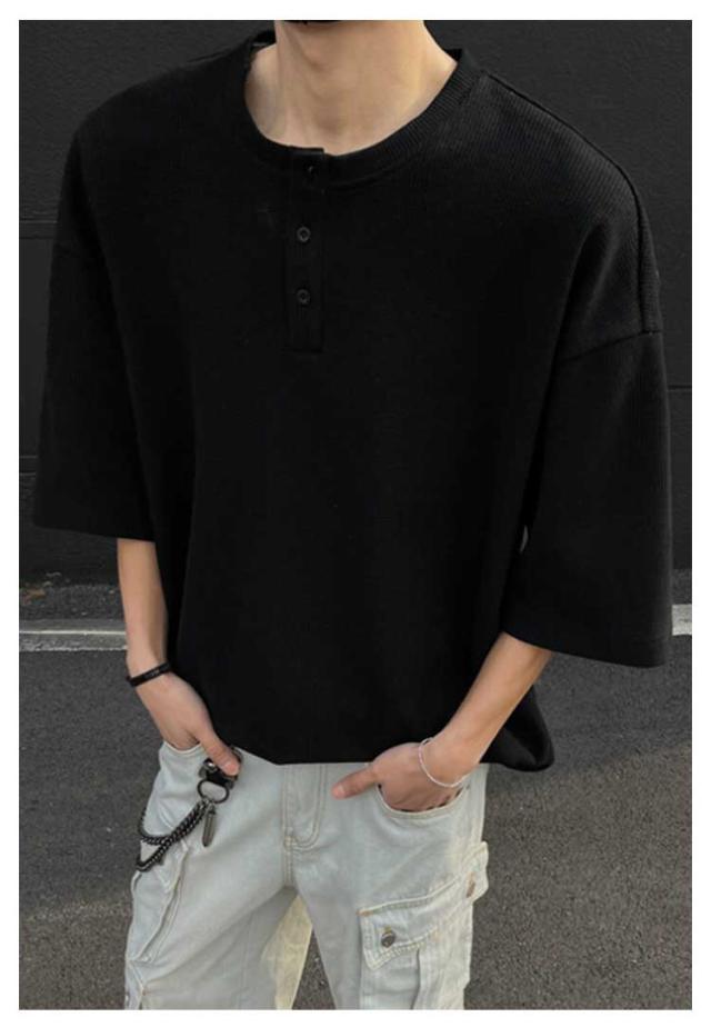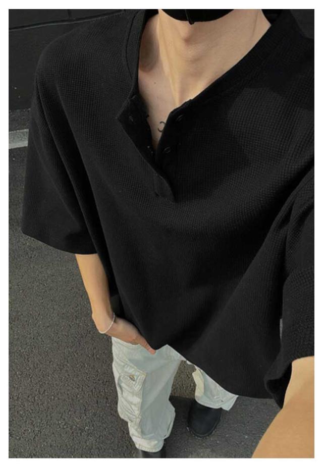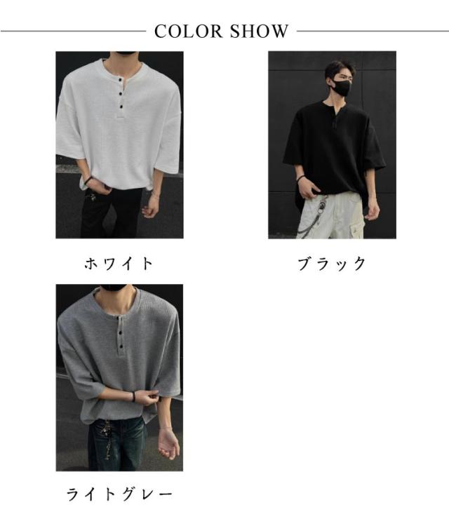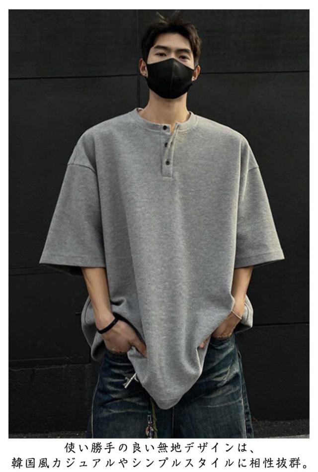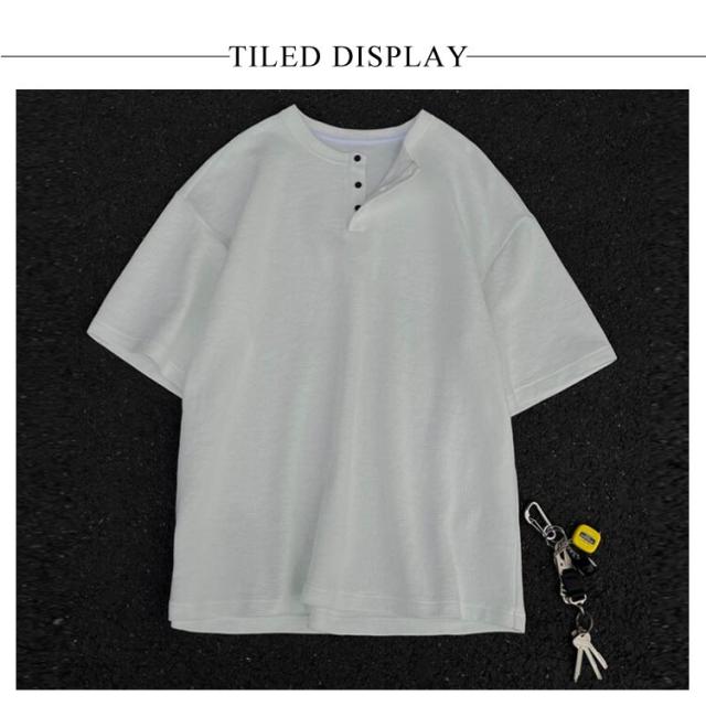 カットソー Tシャツ 半袖 3ボタン ヘンリーネック ワッフル生地 ティーシャツ メンズ ゆったり スタンダード インナー 無地 メンズ 夏物 レイヤード 大きいサイズ カジュアル 韓国風 軽量