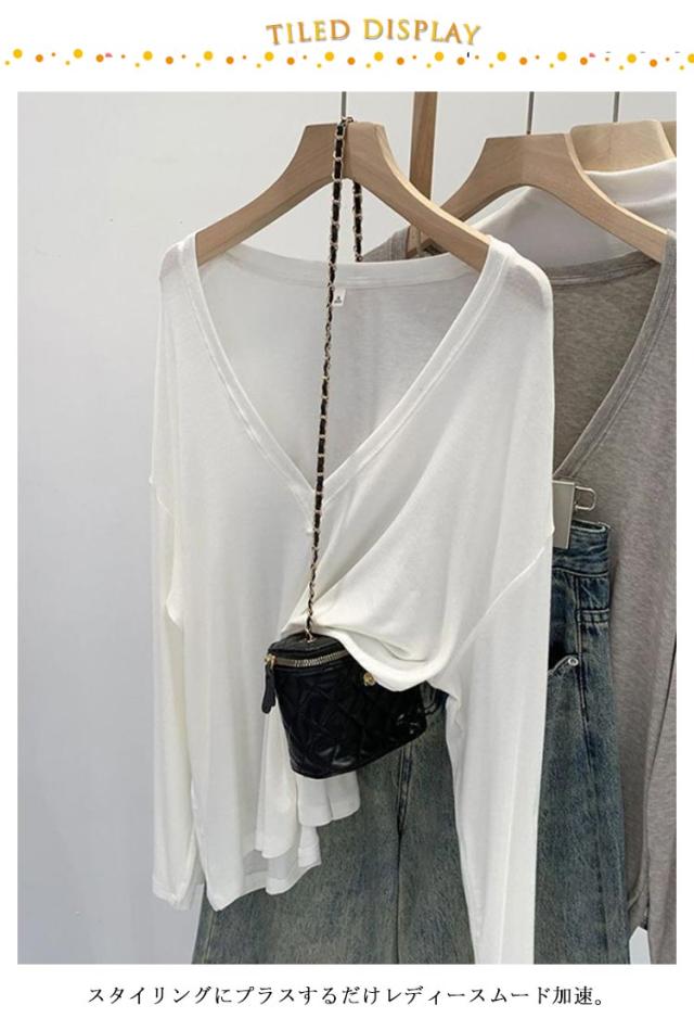 春夏 カットソー 透かし 夏 冷房 長袖 春 薄手 シアーカットソー 透け感 セーター 秋 プルオーバー 透け Vネック 大きいサイズ 紫外線対策 シアートップス UVカット レイヤード 無地 シンプル シアーカットソー 無地 シースルー ゆったり 体型カバー 重ね着 大人 女性