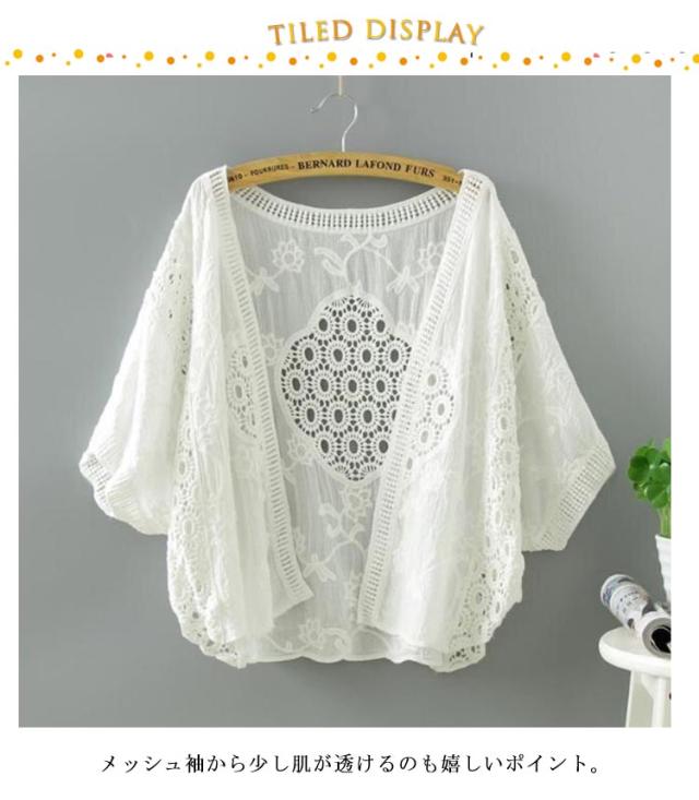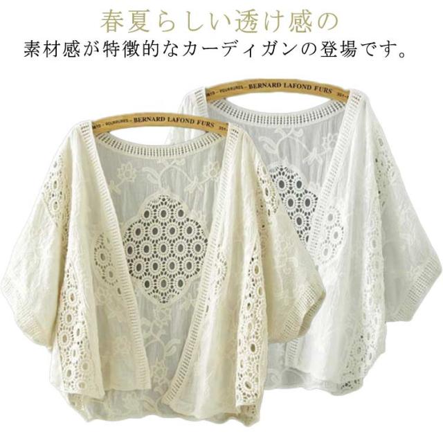 カーディガン 春夏 メッシュ カーディガン トップス ショート丈 きれいめ 花柄レース 透かし編み サマーニット 半袖 レイヤード 冷房対策 花柄 前開き 透かし カジュアル 紫外線対策 Vネック ゆったり フェミニン 薄手