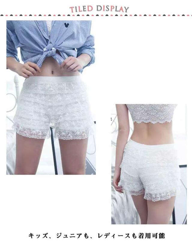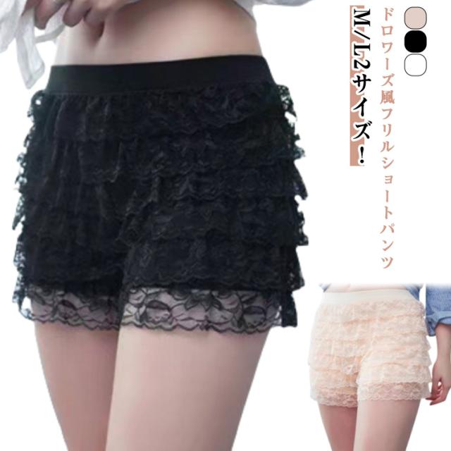| ドロワーズ風フリルショートパンツ M/L2サイズ! キッズ、ジュニアも、レディースも着用可能 柔らかいフリル レースで伸縮性抜群です。 | |