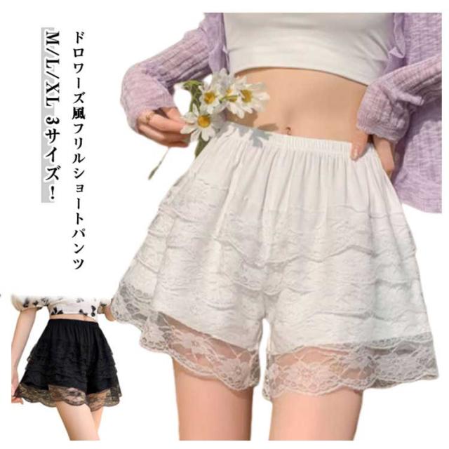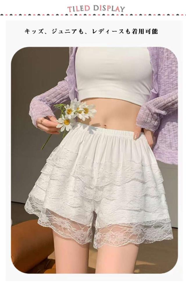 | ドロワーズ風フリルショートパンツ M/L/XL 3サイズ! キッズ、ジュニアも、レディースも着用可能 柔らかいフリル レースで伸縮性抜群です。 | |