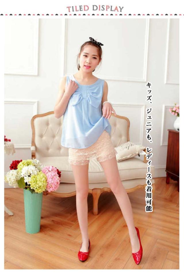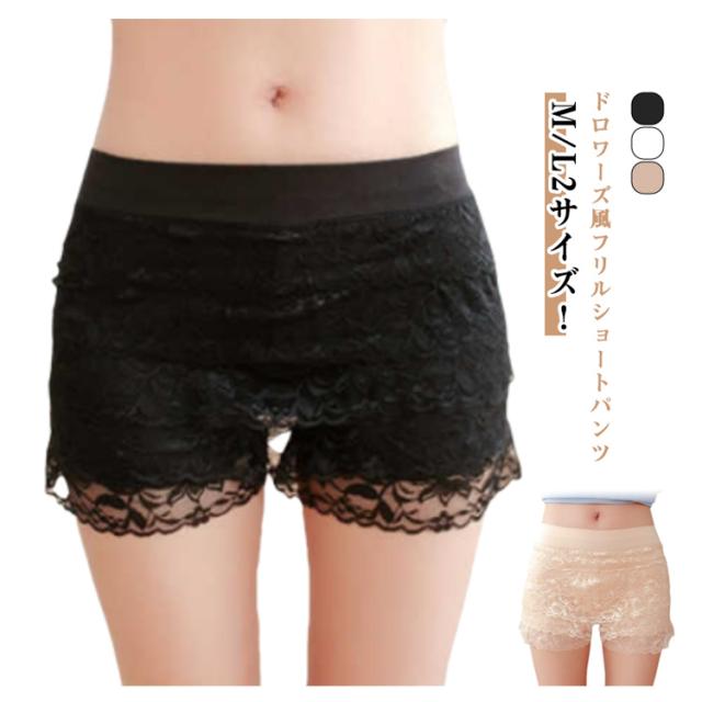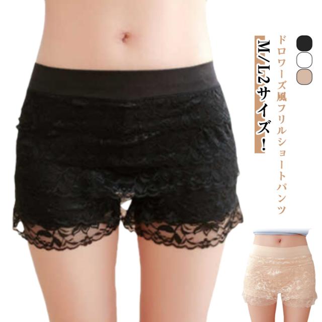 | ドロワーズ風フリルショートパンツ M/L2サイズ! キッズ、ジュニアも、レディースも着用可能 柔らかいフリル レースで伸縮性抜群です。 | |
