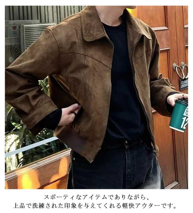 スウェード調 ジャケット メンズ ジャケット コーチジャケット レザーブルゾン レザー スエード調 ショートジャケット コーチジャケット ショートブルゾン 春 秋 アウター