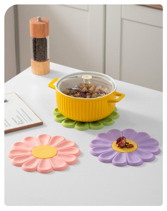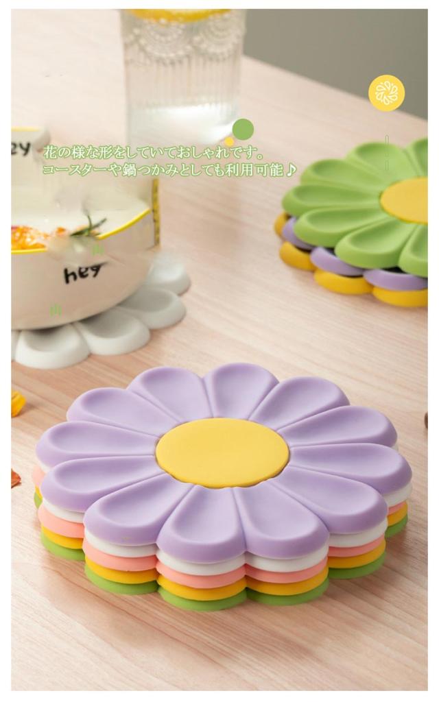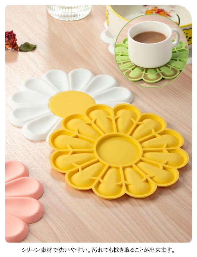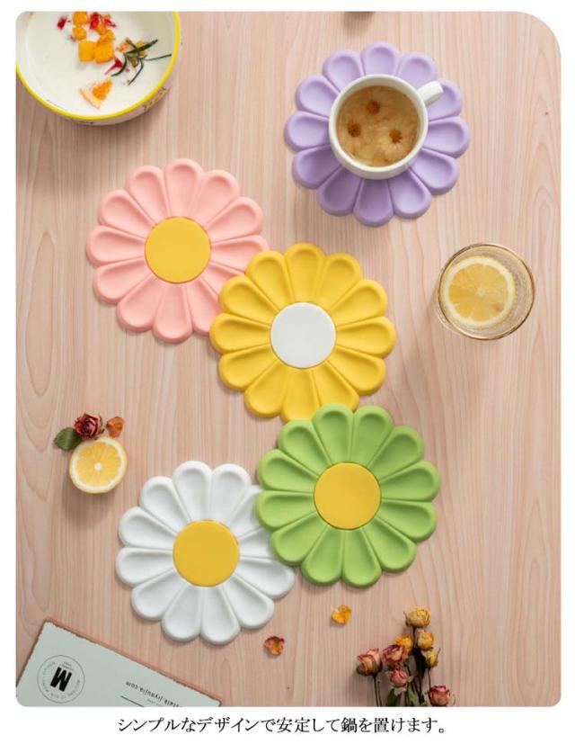 鍋置き コップマット 花 ポットスタンド 22cm 9.5cm シリコン 丸い 17cm 鍋しき かわいい 防水 鍋掴み 衝撃吸収 ランチョンマット 鍋敷き ポットスタンド 撥水 コースター 耐油 滑り止め 鍋敷き デザイン 耐熱 カラバリ インテリア