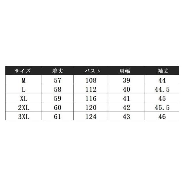 | サイズについての説明 | サイズ 着丈 バスト 肩幅 袖丈 ※サイズ表の実寸法は商品によって1-3cm程度の誤差がある場合がございます。 |