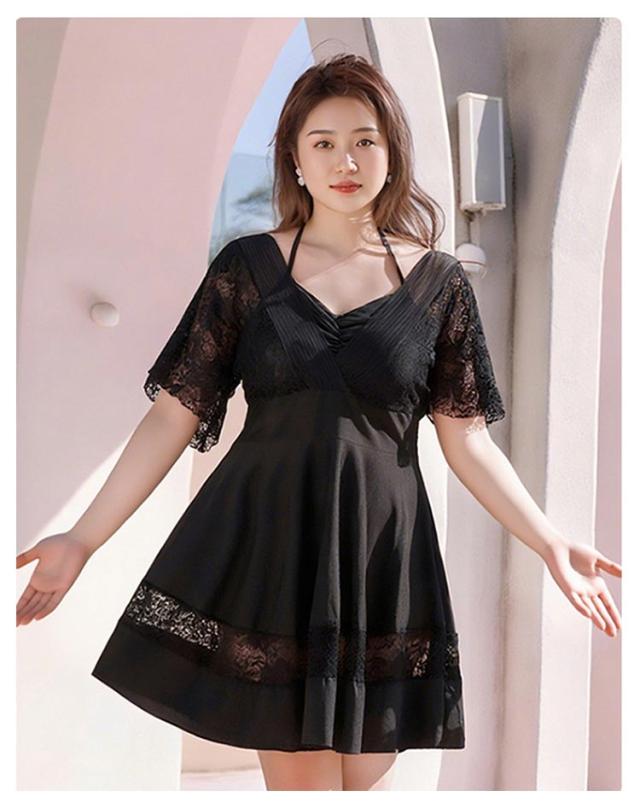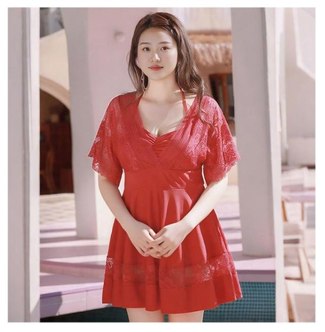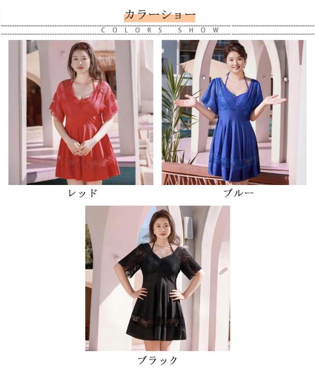 大きいサイズ 二の腕カバー レディース 大きいサイズ ワンピース ワンピース水着 体型カバー水着 ママ水着 フレア オールインワン レース 露出控えめ ミセス お洒落 上品 リゾート
