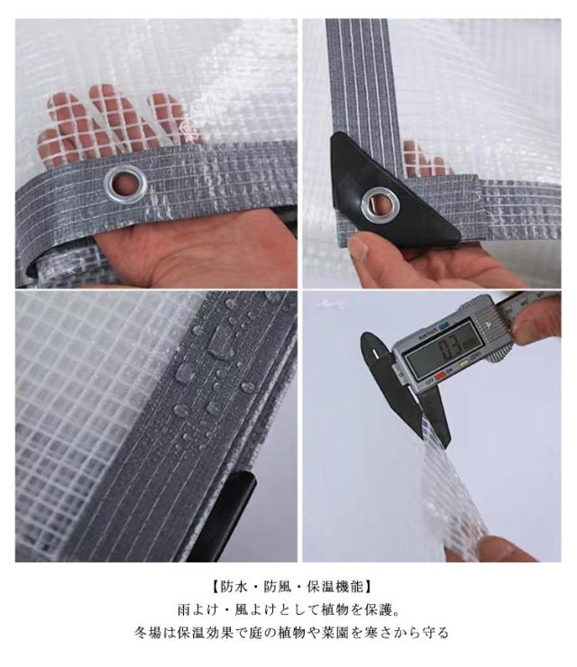 | 透明防水シート 防風 防雨 2×4m 3×3m 【防水・防風・保温機能】 雨よけ・風よけとして植物を保護。 冬場は保温効果で庭の植物や菜園を寒さから守る。 【透明】 光を通すため、温室や植物カバーに最適。 マンションのベランダで洗濯物を隠さずに雨対策可能。 【防塵・防花粉・防雪】 砂埃・花粉・雪の侵入をブロック。 【簡単設置 & カスタマイズ】 間仕切りシートや目隠しシェードとしても使用可能。 仕切り用カーテンとしても使用可能です。 | |