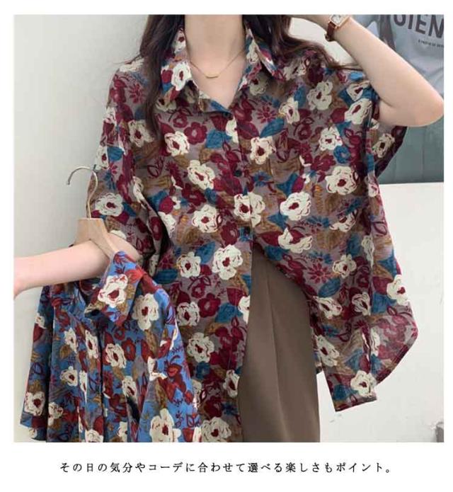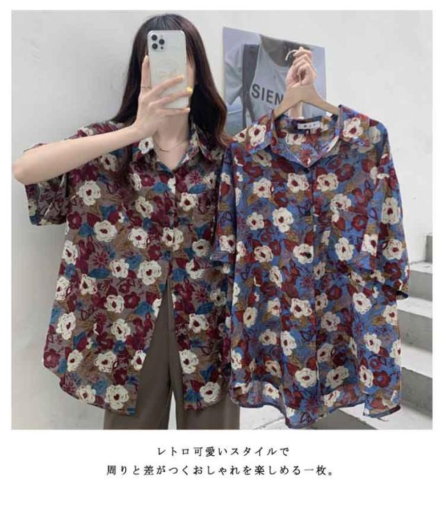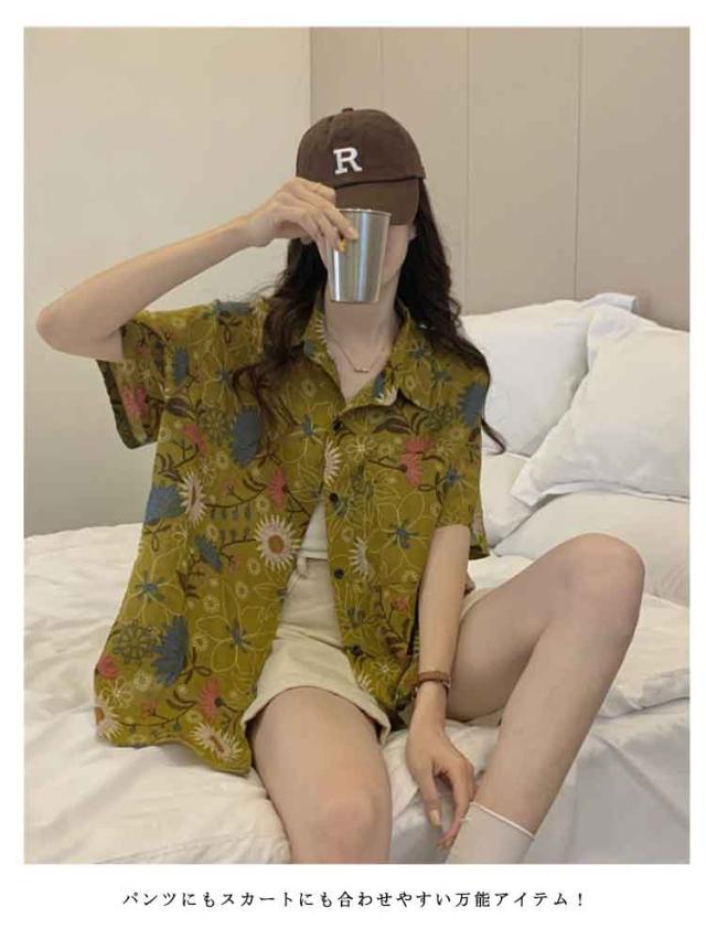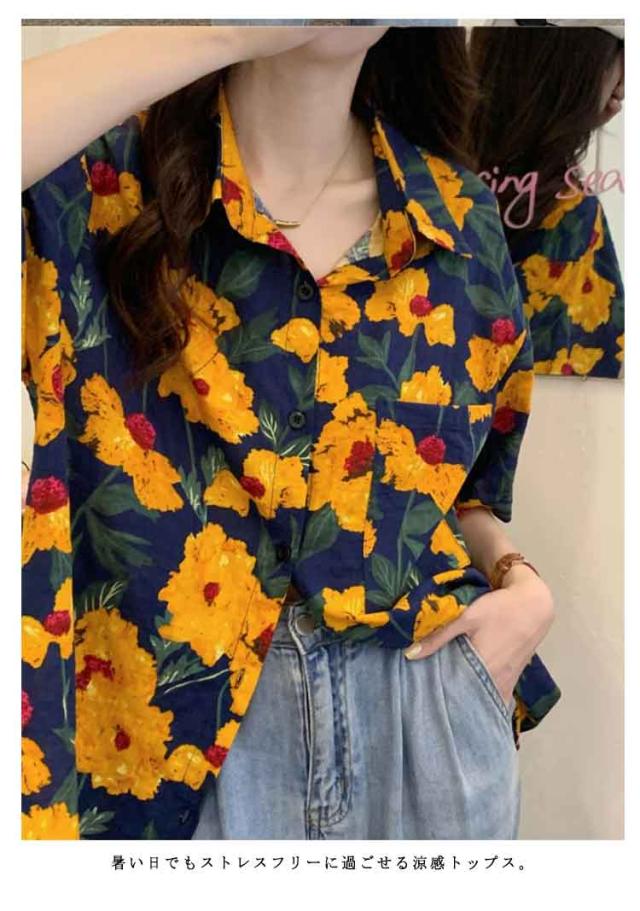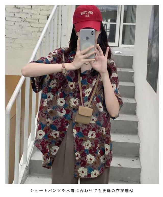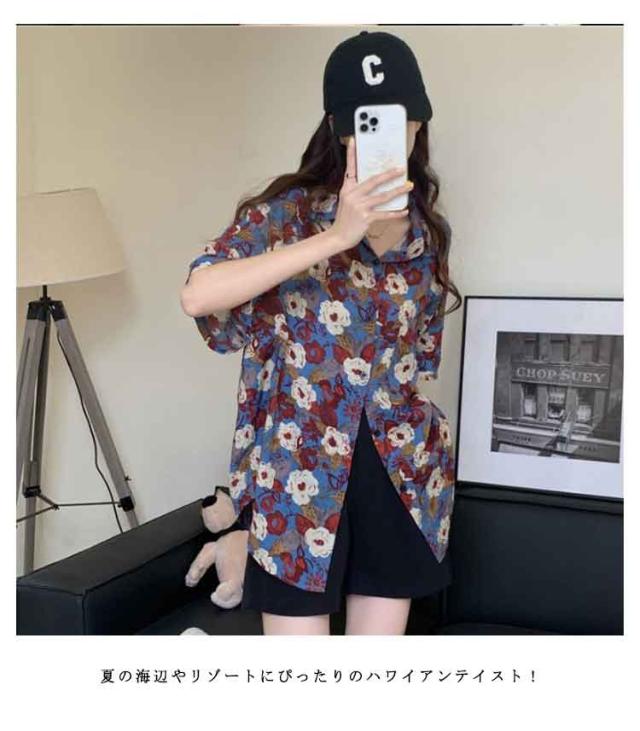 開襟シャツ カジュアルシャツ アロハシャツレディース ハワイアンシャツ トップス 薄手 S-2XL リゾートシャツ 春夏 半袖シャツ アロハシャツレディース 花柄 海リゾート ゆったり オーバーサイズ 着痩せ 体型カバー ビーチウェア フェミニンシャツ