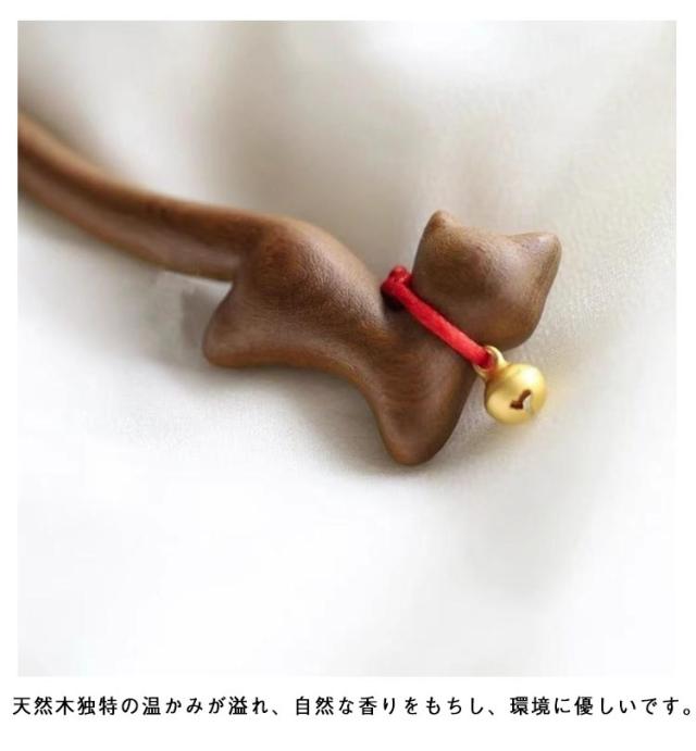 一本差し 天然木 留袖用 2本セット 簪 壇木 猫 かんざし ねこ ヘアスティック 着物 鈴猫 可愛い 髪飾り 成人式 普段使い 振袖 まとめ髪 ヘアアクセサリー 結婚式 猫 浴衣 送料無料 カンザシ かんざし 夏祭り ギフト プレゼント 着物 和服