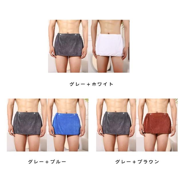 | シャワーやサウナの後でリラックスしたい男性のために! 上品なデザインと快適さが両立したラップタオルです。 軽く通気性に優れていることに加え、肌に触れる面積が小さいため、汗をかいてもさらっとした着心地。 ボタン&面ファスナーの2タイプで調節ができるので、 体型にあわせて調整いただけます。 体に巻く時は水分をしっかり吸水し、 お洗濯の時は乾きやすい素材を使用しました。季節を問わず感触を楽しむことができます。 | |