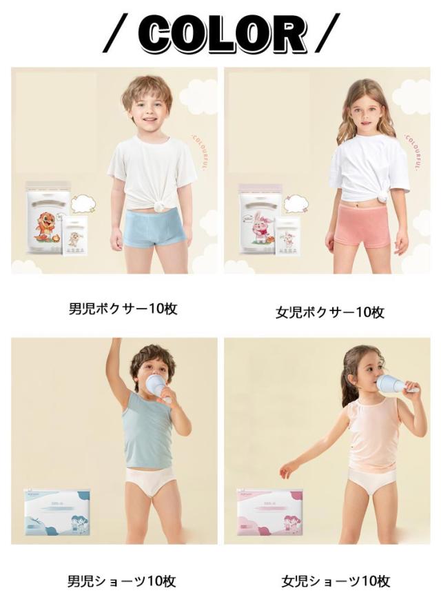 | 色 | 女児ボクサー10枚 男児ボクサー10枚 女児ショーツ10枚 男児ショーツ10枚 |