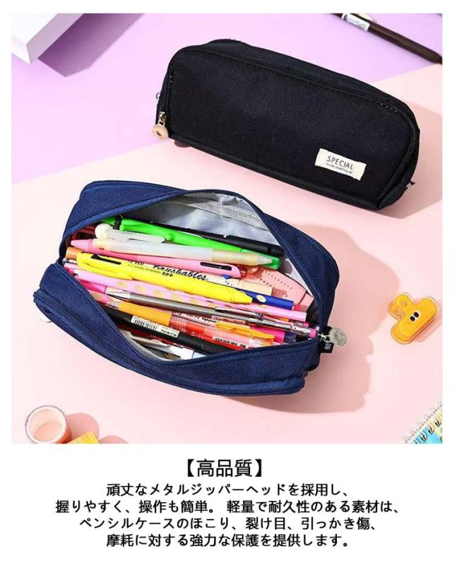 | 収納力抜群!! 大容量ペンケース 【大収納スペース】 サイズは23.5 x 7 x 9cmです。 広々としたスペースには、最大50本のペンあるいは鉛筆、メモ、その他の小さな道具や文房具を収納できます。 所持品や文房具の保管に最適です。 【高品質】 頑丈なメタルジッパーヘッドを採用し、握りやすく、操作も簡単。 軽量で耐久性のある素材は、ペンシルケースのほこり、裂け目、引っかき傷、摩耗に対する強力な保護を提供します。 【便利なデザイン】 3つのコンパートメントを備えた大容量スペースで、さまざまな品物を個別に整理できます。 使いやすく、品物を見つけやすい。・キャップを刺した鉛筆の長さでも収納可能。 【多機能】 ペン袋は鉛筆に適しているだけでなく、化粧品バッグ、クラフトバッグ、旅行または化粧品バッグ、3C製品またはアクセサリーバッグなど、さまざまな人々の実際のニーズを満たすこともできます。 【ベストギフト】 あらゆる種類のアートワーク、ペン、鉛筆、その他の小物の保管に最適です。 | |