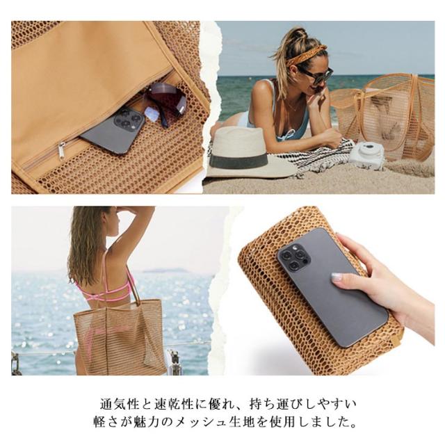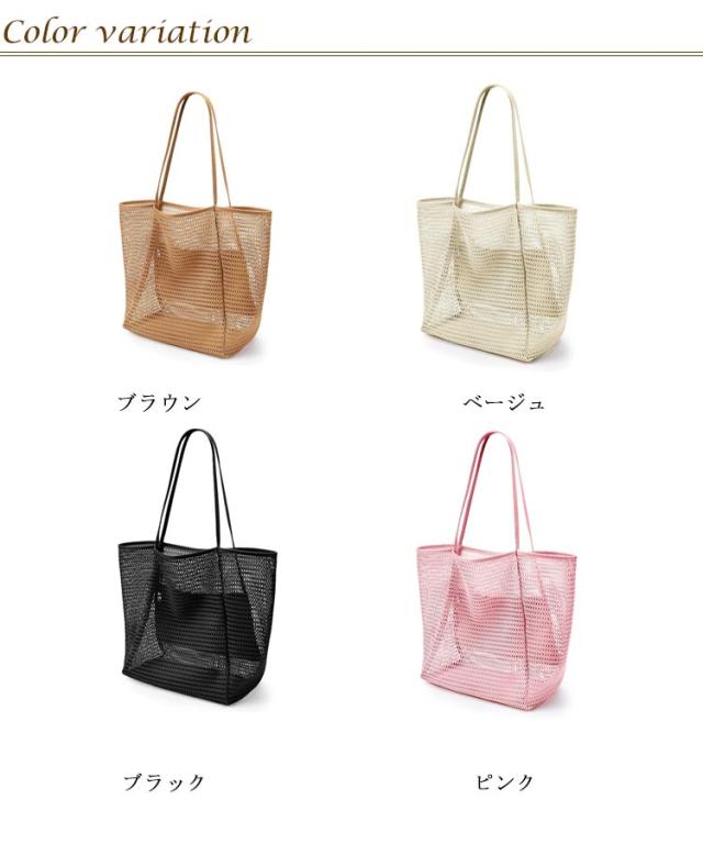 編み 大容量 夏 プールバッグ トートバッグ メッシュ スパ メッシュ ビーチバッグ 軽量 エコバッグ メッシュバッグ ジム 手提げ アウトドア お砂場 プール 海 旅行 ビーチ リゾート ブラウン ベージュ ブラック ピンク