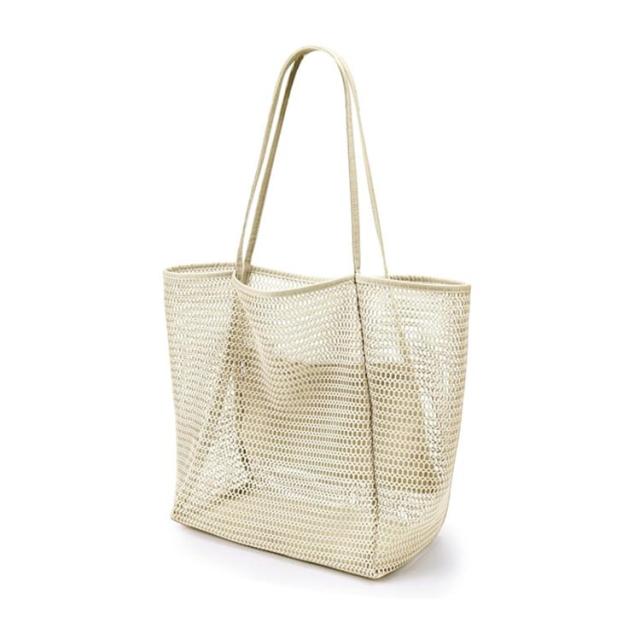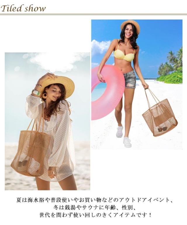 | 涼しげな印象のメッシュ素材。☆トートバッグ・大容量☆ 拭き取るだけで 汚れが落ちやすいコーティング素材は、アウトドアでの使用にも便利です。 プールサイドやビー チなどで荷物を濡れたまま持ち運びできる。濡れた水着やタオルをいれても気になりません。 通気性と速乾性に優れ、持ち運びしやすい軽さが魅力のメッシュ生地を使用しました。 夏は海水浴や普段使いやお買い物などのアウトドアイベント、冬は銭湯やサウナに年齢、性別、世代を問わず使い回しのきくアイテムです! | |