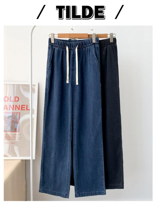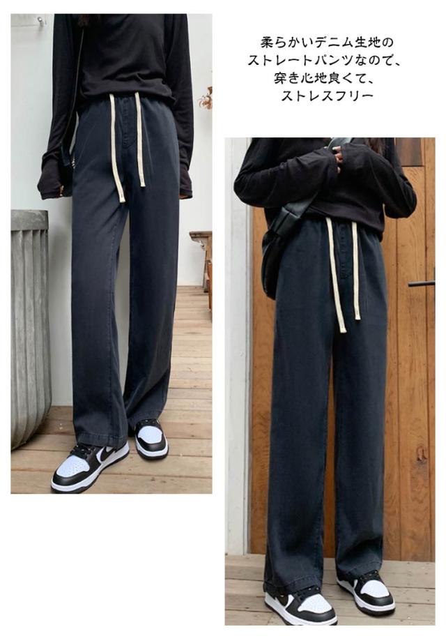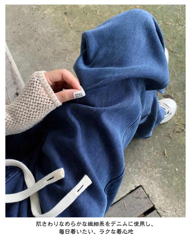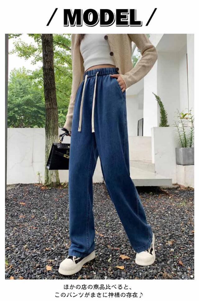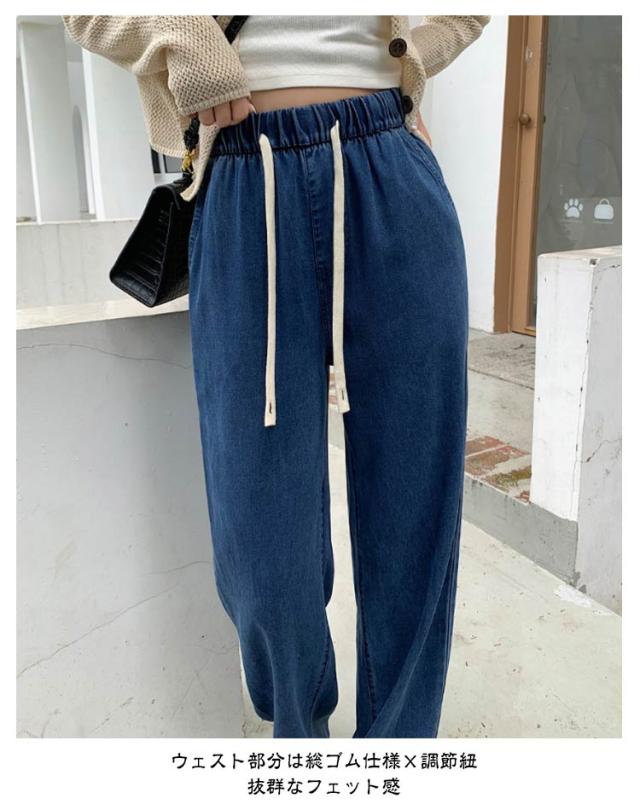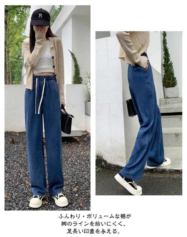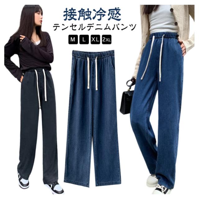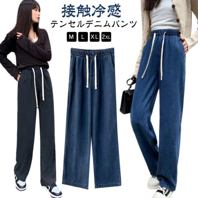 デニムイージーパンツ テンセル 冷感 接触冷感 ひんやり ワイド デニム ジーンズ 夏デニム デニムパンツ 夏 ロングパンツ 接触冷感 テンセルデニム ゴム 薄手 涼しい ストレート ワイドパンツ ジーンズ 夏用 ジーパン
