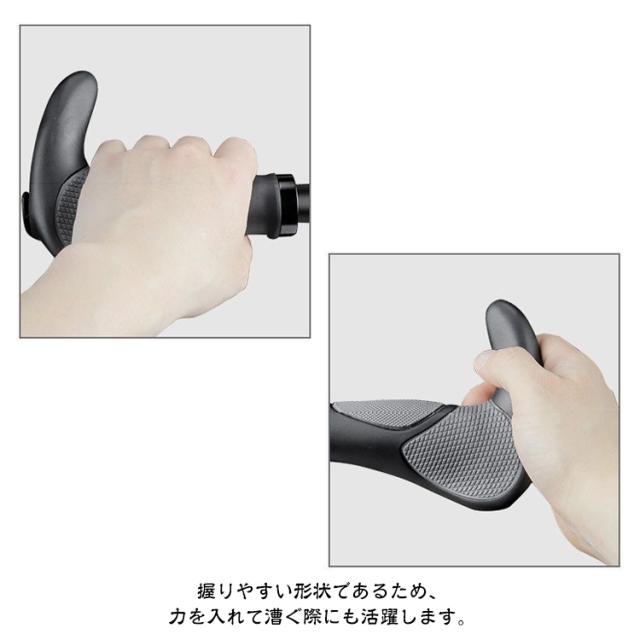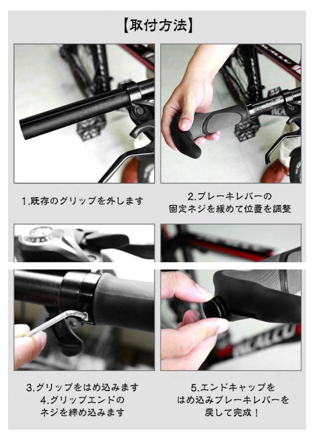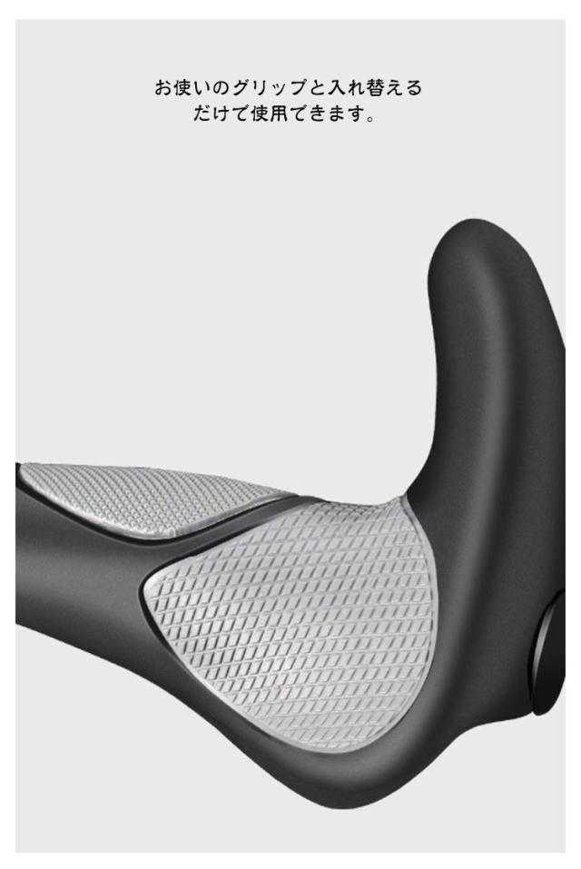 | 握りやすいエルゴグリップです。工具付きで取り付け簡単! お使いのグリップと入れ替えるだけで使用できます。 滑りにくく、手にしっかりフィット!安全な運転を実現。 手のひらの接地面積が広がるエルゴデザインなので、衝撃負担を分散・負荷を和らげてくれます。 雨や紫外線による劣化を防いでくれる加工で長持ち♪ 一般的な自転車のハンドルバーの標準直径は22.2mmです。 多少細い場合はテープ、ハンドルパッド等でご調整をお願いいたします。 平たいフラットハンドル形状で手首への負担を軽減し、長時間長距離の移動に適しています。 握りやすい形状であるため、力を入れて漕ぐ際にも活躍します。 【取付方法】 1.既存のグリップを外します 2.ブレーキレバーの固定ネジを緩めて位置を調整 3.グリップをはめ込みます 4.グリップエンドのネジを締め込みます 5.エンドキャップをはめ込みブレーキレバーを戻して完成! | |