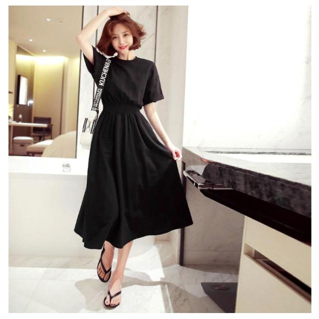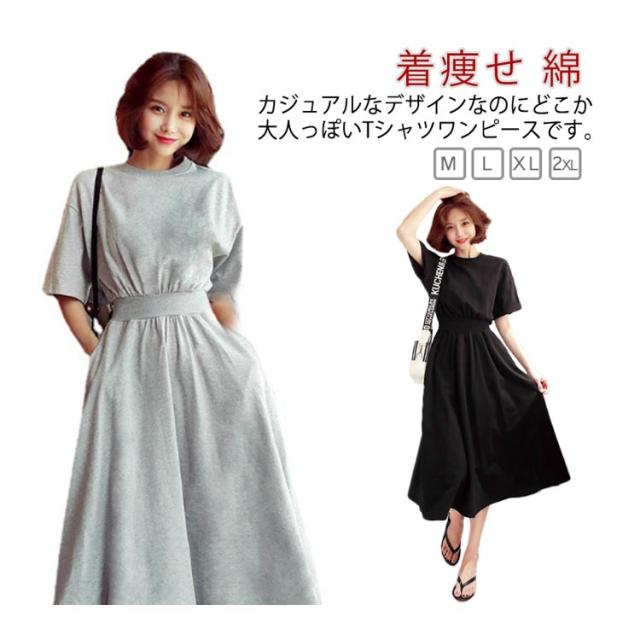 マキシワンピース リゾートワンピース ワンピース 韓国ファッション きれいめ レディース ロング クルーネック Tシャツ 大きいサイズ 夏 オシャレ ドレス ゆったり パーティー ロングワンピース 着痩せ ワンピース 綿 クルーネック 体型カバー 送料無料