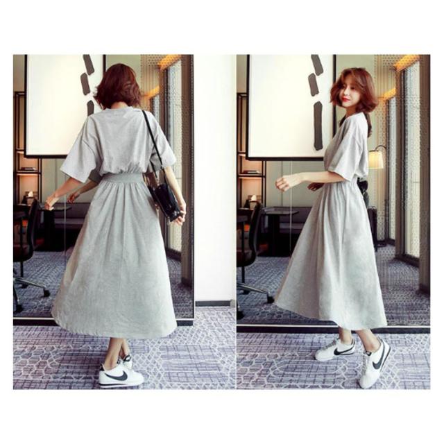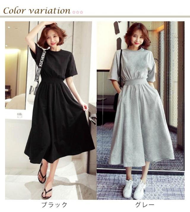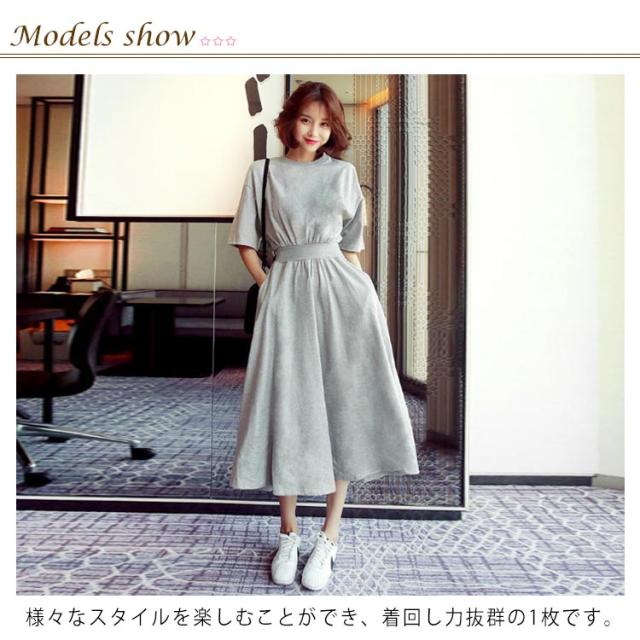 | M−2XL!カジュアルなデザインなのにどこか大人っぽいTシャツワンピースです。 様々なスタイルを楽しむことができ、着回し力抜群の1枚です。 ウエストゴムの位置が少し高めなので脚長効果も絶大です! | |