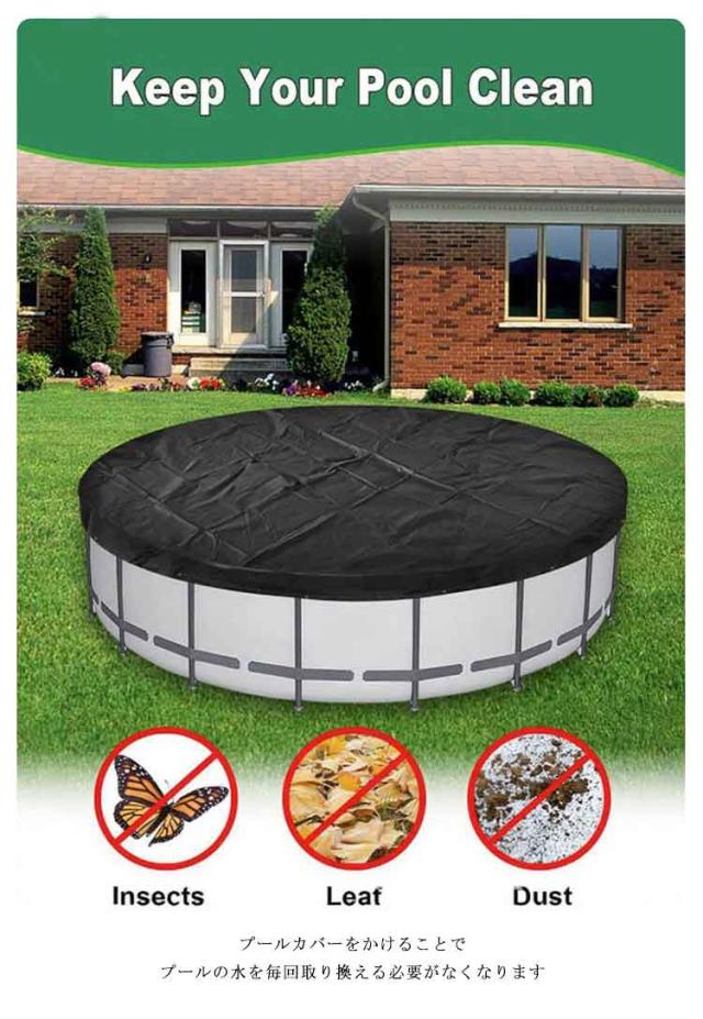 | プール専用カバー 防雨・防塵・日よけ 直径160cm 高さ30cm 防水加工と裏面にシルバーコーティングを施している厚手のオックスフォード生地を使用。雨、雪、霜、日光からプールを守ります。 プールを使用しないときはカバーをかぶせて、落ち葉やゴミの侵入を防ぎます。 プールカバーをかけることで、プールの水を毎回取り換える必要がなくなります。 使わない時は折りたたんで省スペースにしまうことができます。 | |