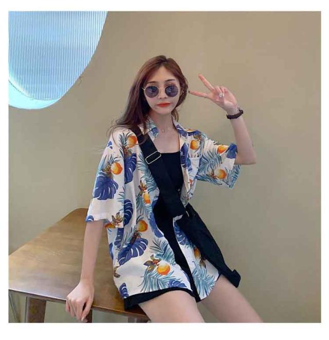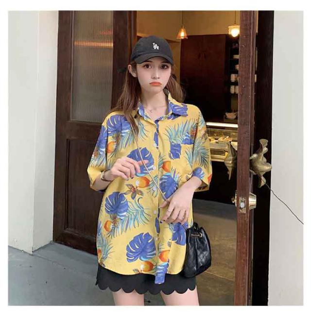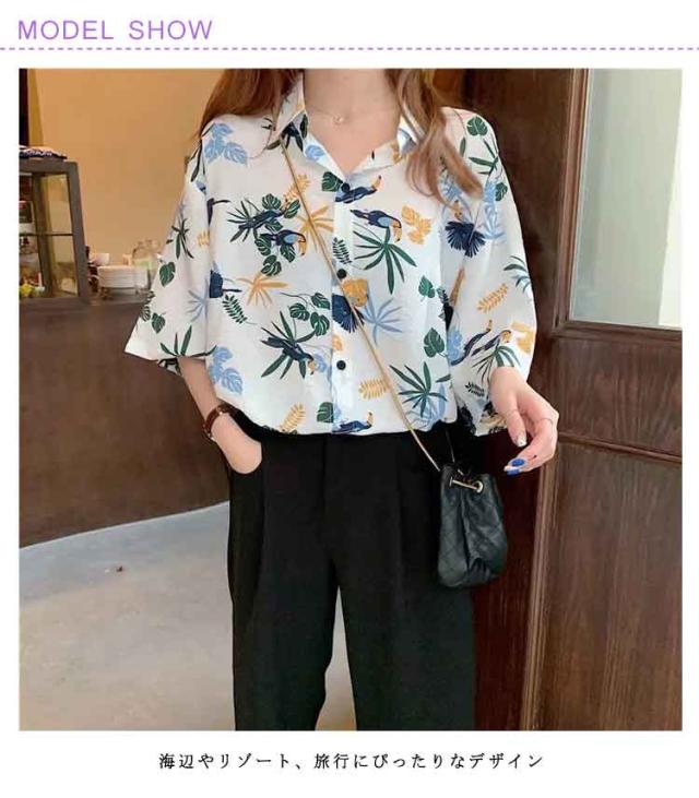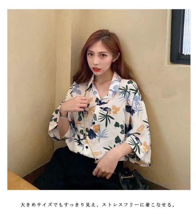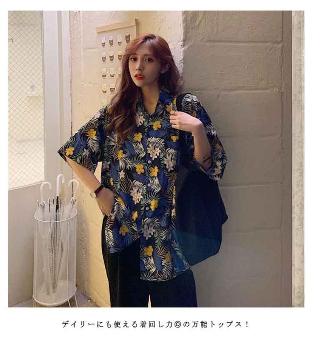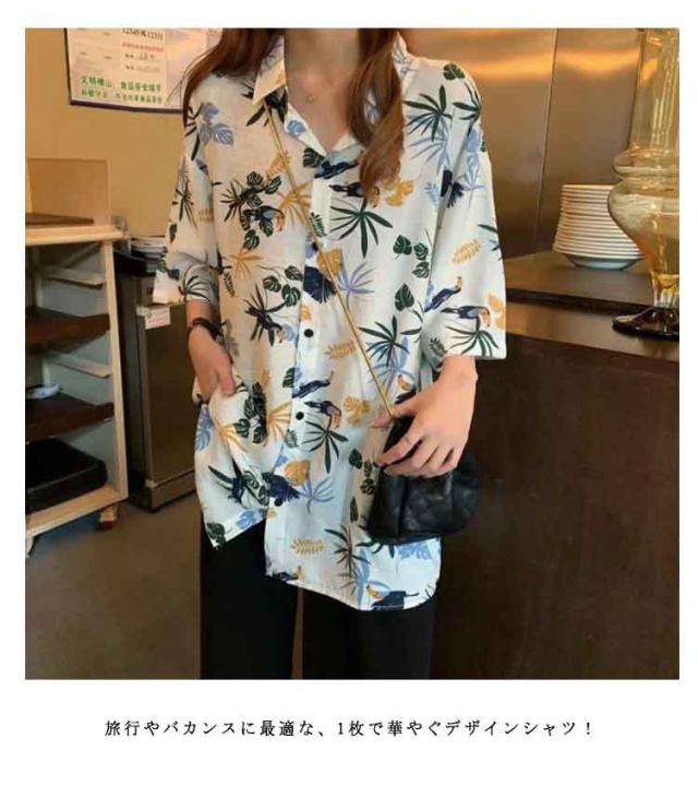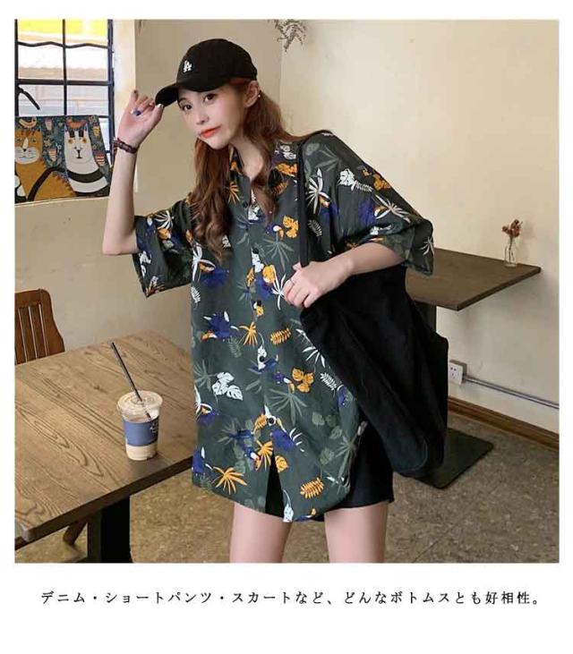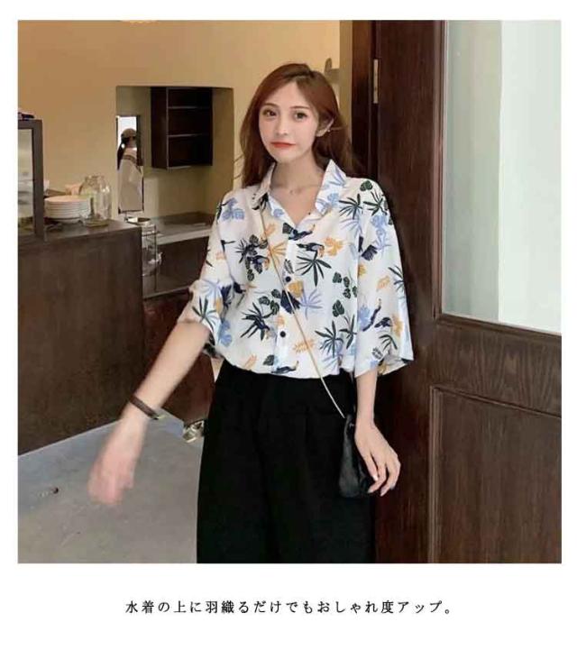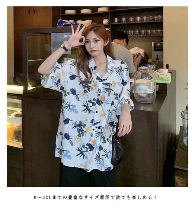 レディース ビーチウェア ハワイアンシャツ 春夏 薄手 花柄シャツ 夏服 半袖 ゆったり アロハシャツ リゾートシャツ トップス 体型カバー オーバーサイズ カジュアルシャツ 通気性 旅行 海 ナチュラル シンプル