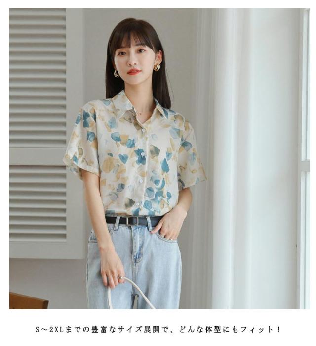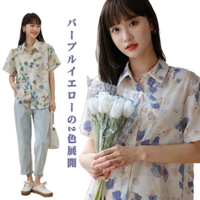 イエロー オフィスカジュアル 花柄シャツ 春夏 開襟シャツ シフォンシャツ 体型カバー 大人かわいい S-2XL 半袖シャツ ゆったり カジュアルシャツ リゾートシャツ パープル 花柄シャツ オーバーサイズ 旅行 着痩せ 通勤
