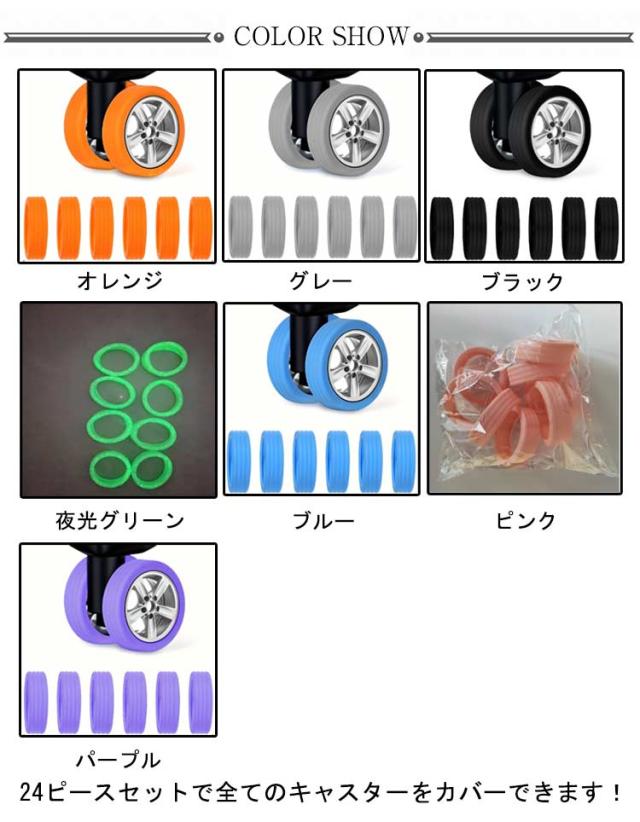 キャスターカバー キャスターカバー 24個セット スーツケース キャリーバッグ タイヤカバー タイヤカバー ストッパー 静音 薄型 傷防止 車輪カバー シリコン キャスターカバー キャスター台 汚れにくい 蛍光カラー 防音 静音