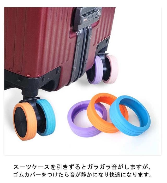 | 柔らかいシリコン製で、スーツケースの車輪に装着して傷や汚れから守ります。 スーツケースを引きずるとガラガラ音がしますが、ゴムカバーをつけたら音が静かになり快適になります。 帰宅後は外すだけでOK!お掃除の手間が激減! 豊富なカラバリで目立ちやすい!探す時間を短縮! 24ピースセットで全てのキャスターをカバーできます! | |