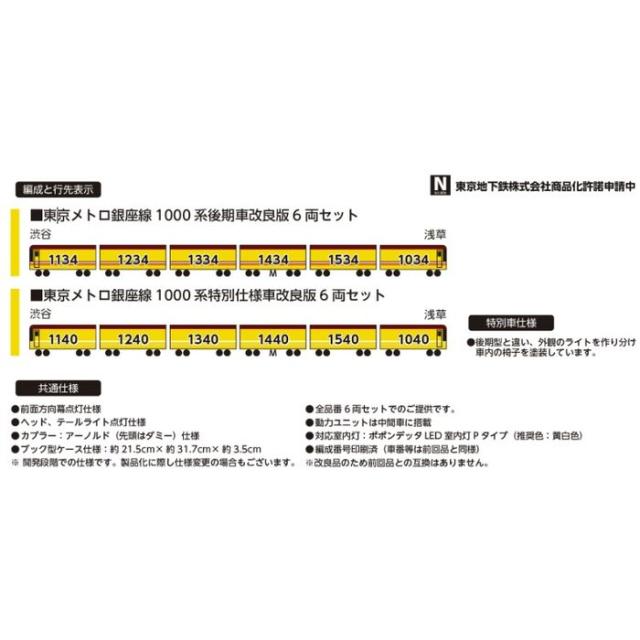 ■商品名:Nゲージ 東京メトロ銀座線1000系特別仕様車改良版6両セット 鉄道模型