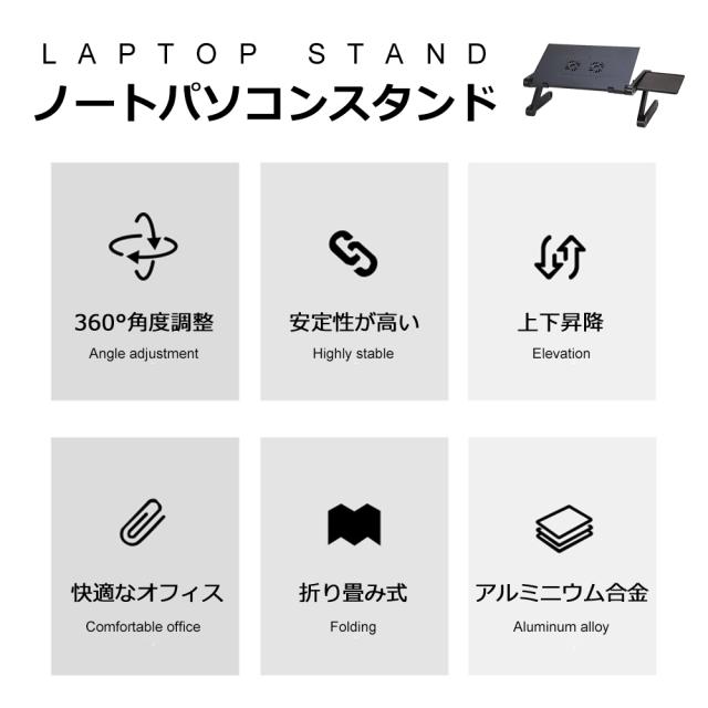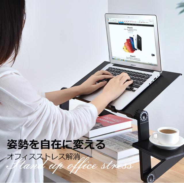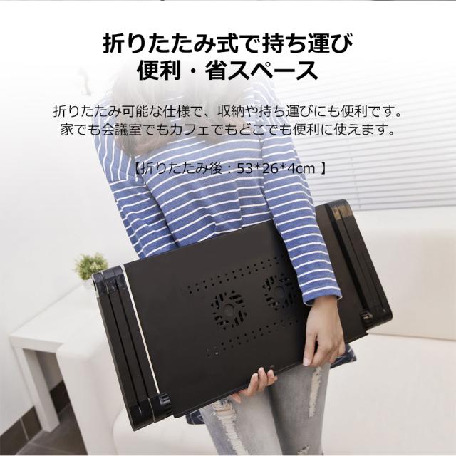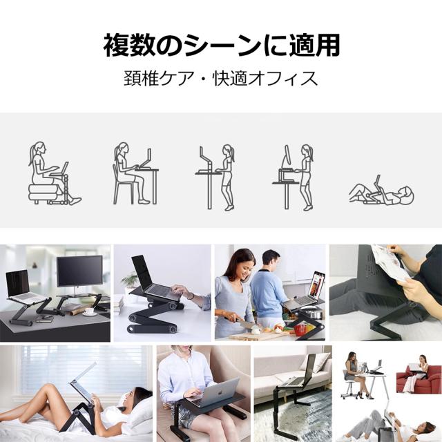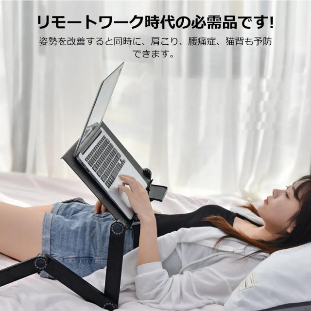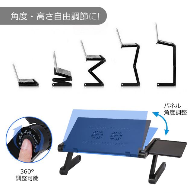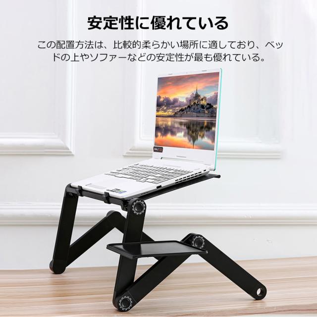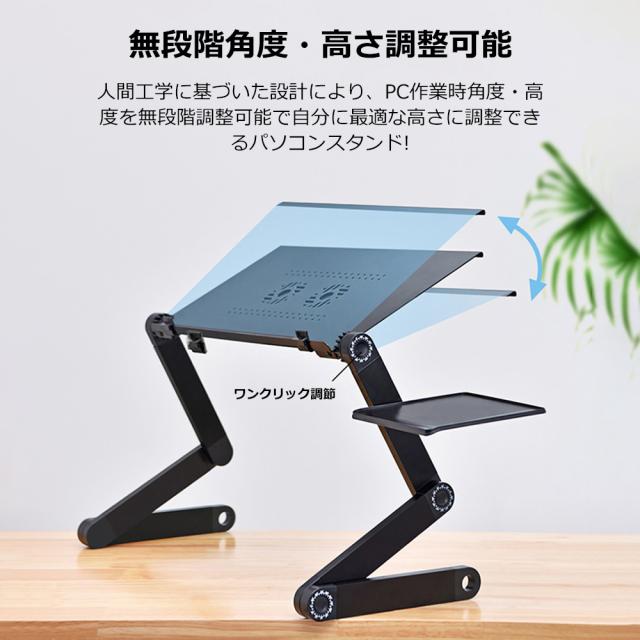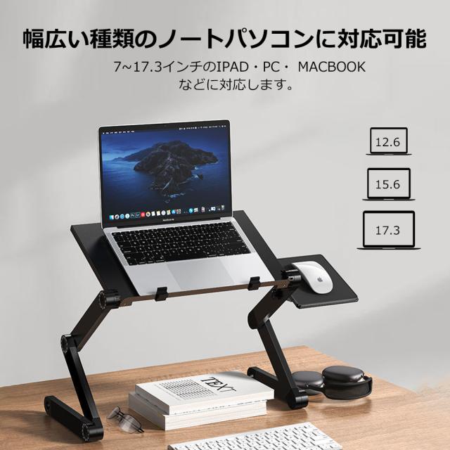 PCスタンド パソコンデスク折り畳み式 マウス置き場 ノートパソコンスタンド 伸縮型 角度調整 高さ 持ち運び 雑誌 リラックス ブラック