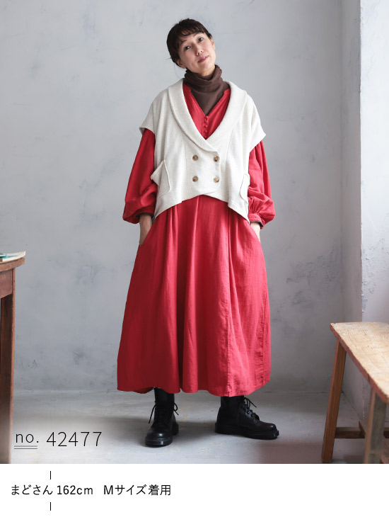 はちみつ堂 いちじくジャムのワンピース レディース ロング フレア Aライン 長袖 パフスリーブ スキッパー風 麻混 リネン混