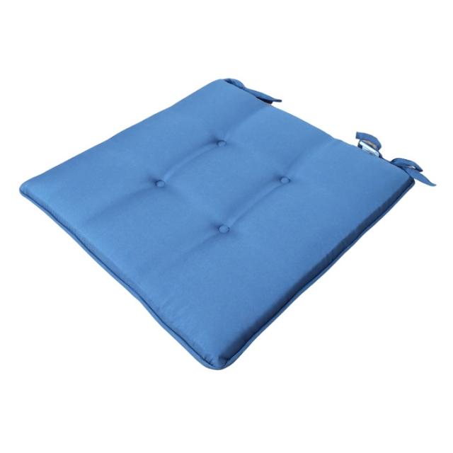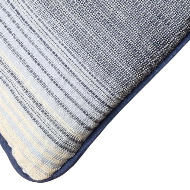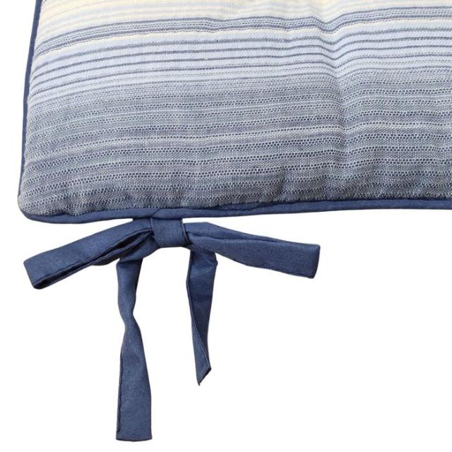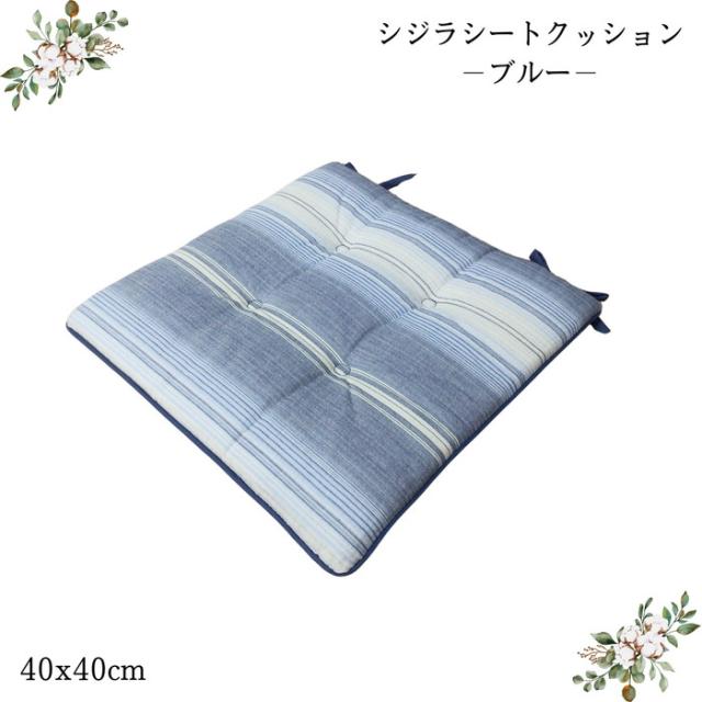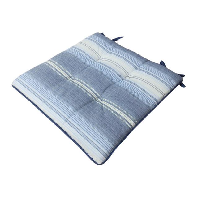 さらさら綿シジラシートクッション 40x40cm ブルー色 コットン生地 ボーダー柄 椅子用固定ひも付き